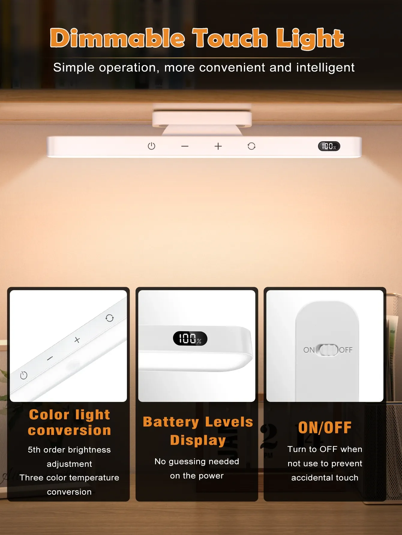 120LEDs,high brightness, Dimmable, No need battery, Rechargeable with USB cable, Wireless installation,Three levels of color temperature adjustment.