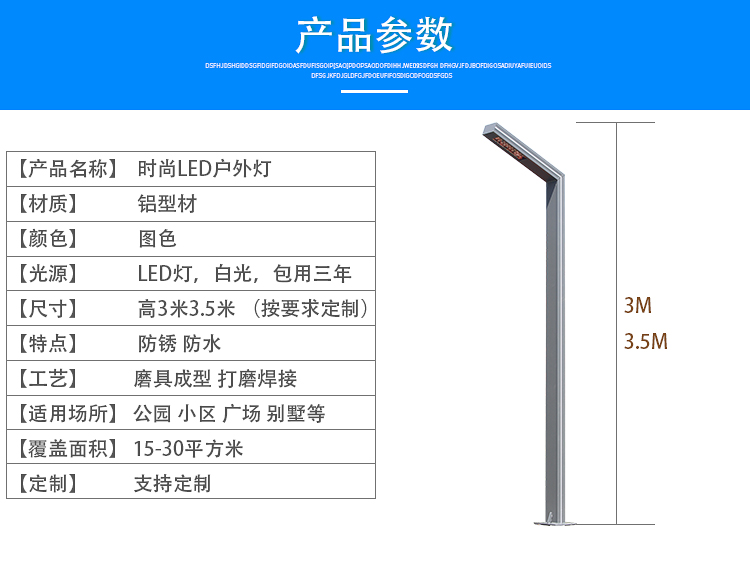 Ánh sáng sân vườn ngoài trời không thấm nước 3 mét dẫn ánh sáng cảnh quan bãi cỏ sân vườn cộng đồng biệt thự nhôm hồ sơ nhà sản xuất đèn đường siêu sáng