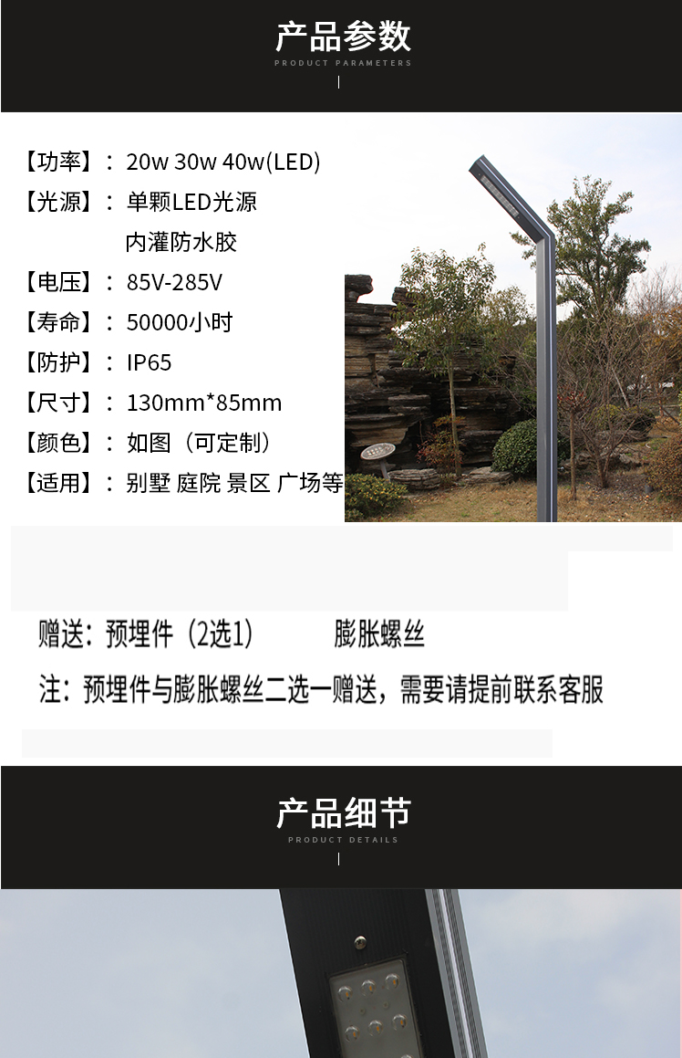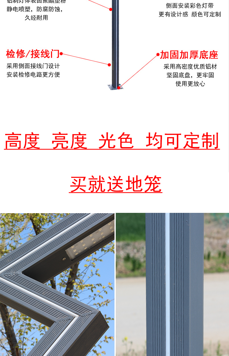 Ánh sáng sân vườn nhôm hồ sơ phong cảnh ánh sáng năng lượng mặt trời dẫn ngoài trời không thấm nước 3 mét đường siêu sáng biệt thự vườn cộng đồng