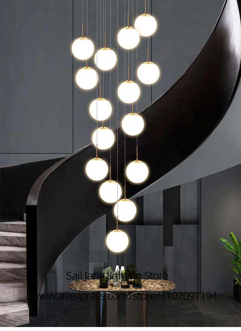Take a look ✨: Long LED Pendant Lamp Hanging Modern Living Room Lamp Villa Staircase Pendant Lamp Spotlight Indoor Lighting Tubular Chandelier
