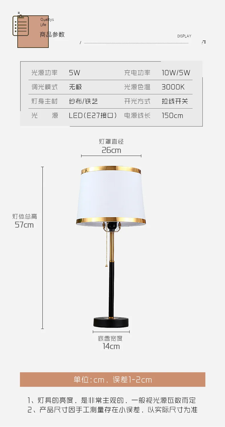 Bắc Âu và Mỹ phong cách phòng ngủ để bàn ở lại dây đèn bàn phòng khách sáng tạo đèn bàn nhỏ phòng đèn ngủ. Quý khách có nhu cầu mua Đèn để bàn nhập khẩu vui lòng liên hệ với chúng tôi để được tư vấn hỗ trợ. Dịch vụ mua hàng Trung Quốc sẽ hỗ trợ quý khách mua hàng từ nhà cung cấp và giao tới tận tay quý khách hàng..Loại phích cắm:EU Lớp hoàn thiện:sắt Chất liệu:Kim loại Bảo hành:3 Loại đế:e27 Phong cách:Phong cách hiện đại Nguồn sáng:Bóng đèn LED Loại bóng:Vải Có thể điều chỉnh độ sáng:Có Chất liệu thân:sắt Chứng nhận:CCC,ce Điện áp:90-260V Nguồn điện :Bao gồm bóng đèn AC:Có Tên thương hiệu:NoEnName_Null Xuất xứ:Trung Quốc đại lục Loại sản phẩm:Đèn bàn