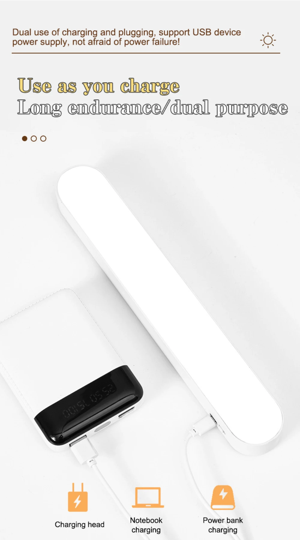 3. [USB charging]: small and portable, with magnetic stripe on the lamp body. Take it anytime, anywhere. There is a warm reading lamp beside the bed.