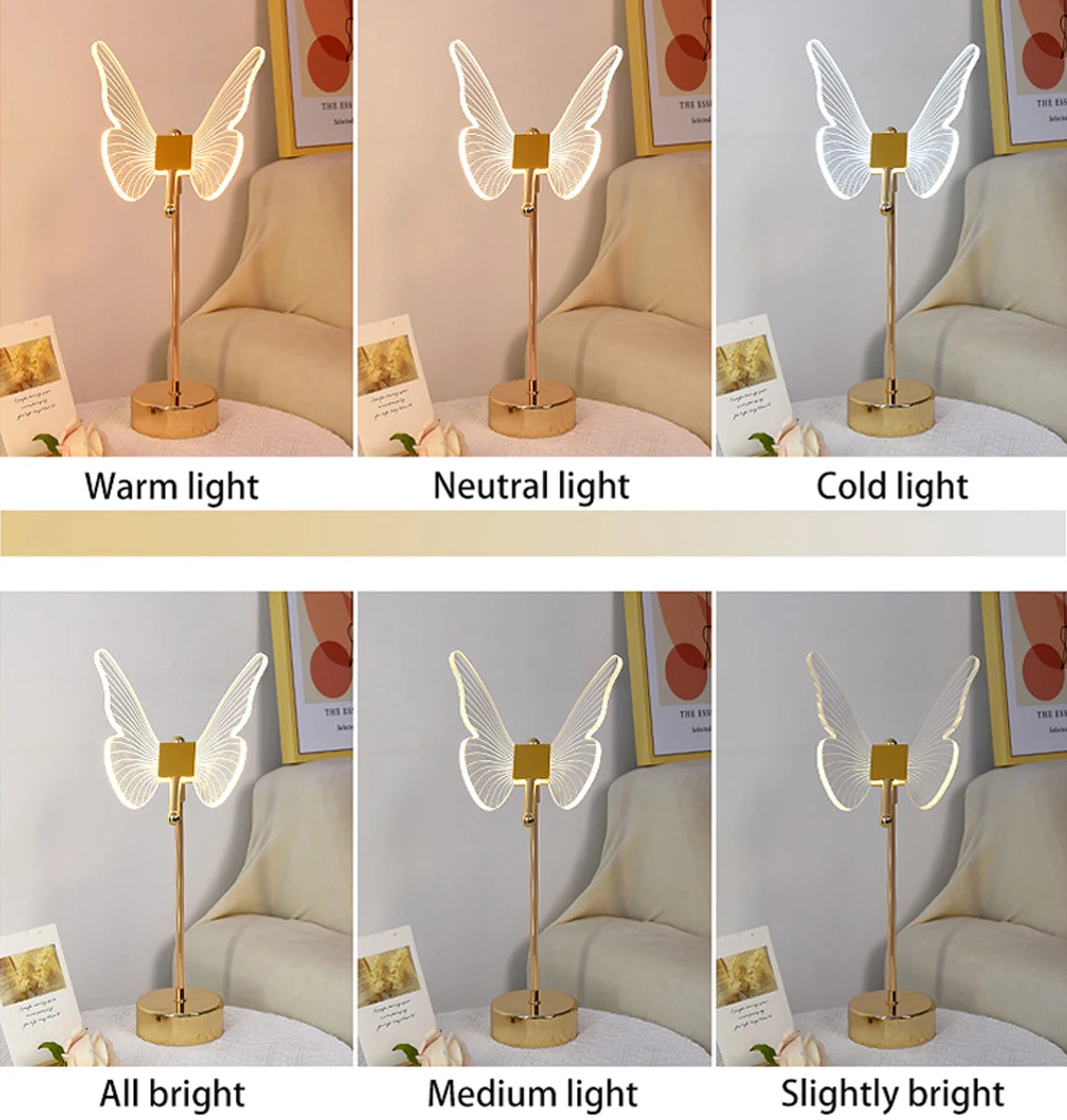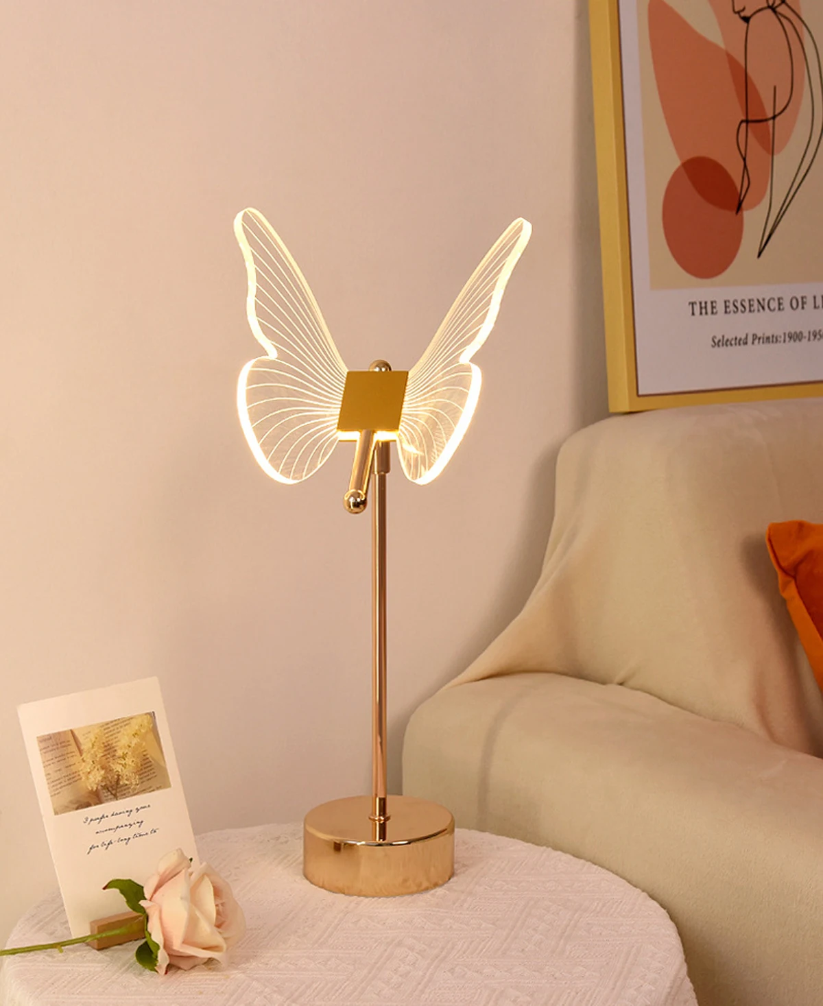 Table Lamp Retro Gold Acrylic Butterfly LED Desk Lamp Hotel Villa Art Decor LED Table Light Living Room Bedside LED Night Lights