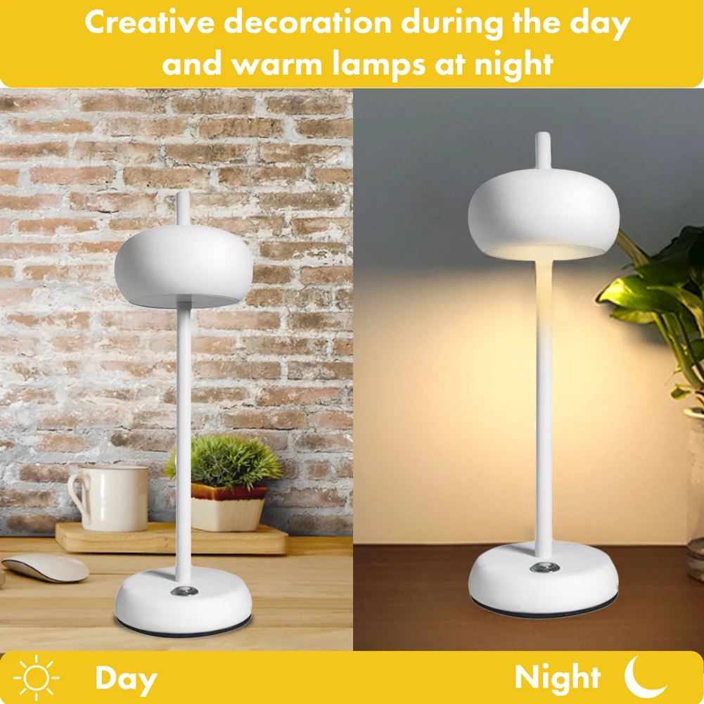 Feature: 1. Modern Design: The mini table lamp features a modern design that is stylish and eye-catching, making it perfect for any home decor. Its polished metal casing adds an elegant touch to your living space. 2. Rechargeable Battery: This wireless LED battery-powered night light is perfect for lighting up your living room, dining room, kitchen, children’s room, bar, indoor or outdoor areas without the need for cords or electrical outlets. It is highly portable and convenient to use. 3. Touch Control: With its simple design and high-quality touch control system, this portable retro decorative lamp offers perfect tactile feedback and is truly a remarkable portable lamp. 4. Energy-Efficient and Eye-Caring: This desk lamp/reading light features a cordless LED lighting system that is non-flickering and anti-glare, providing you with a comfortable reading experience while protecting your eyes from fatigue. 5. Enjoy Quality Time: When used during family dinners or gatherings with friends, this small desk lamp illuminates the table and creates a warm and cozy atmosphere throughout the room, showcasing the elegance of your home. Whether you’re looking to create a cozy ambiance in your living space or provide a comfortable reading experience, this vintage night lamp is sure to meet your needs.