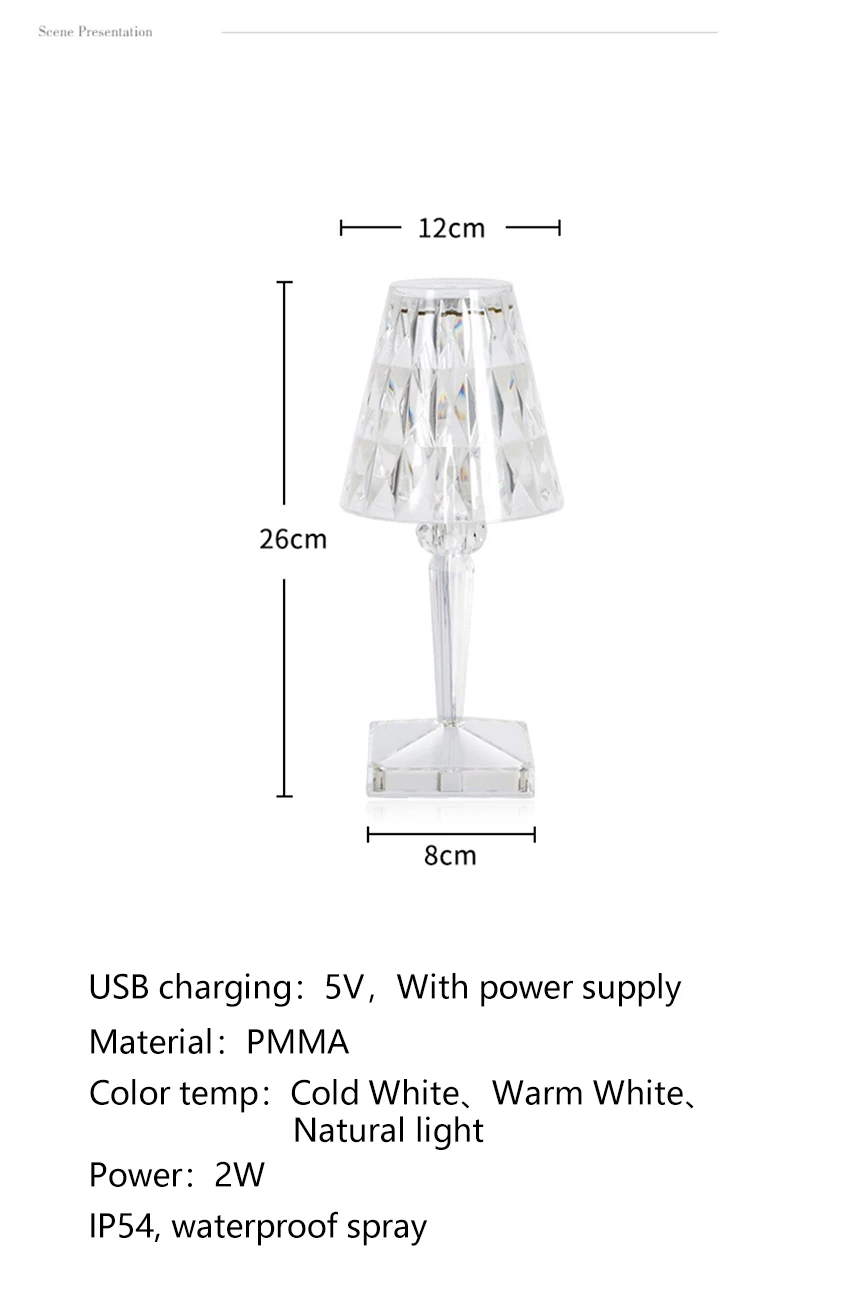 MANVIV Diamond Table Lamp with Touching Control USB Crystal Desk Lamps Romantic Atmosphere Light for Party Gift Night Light