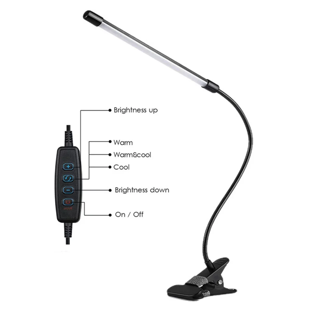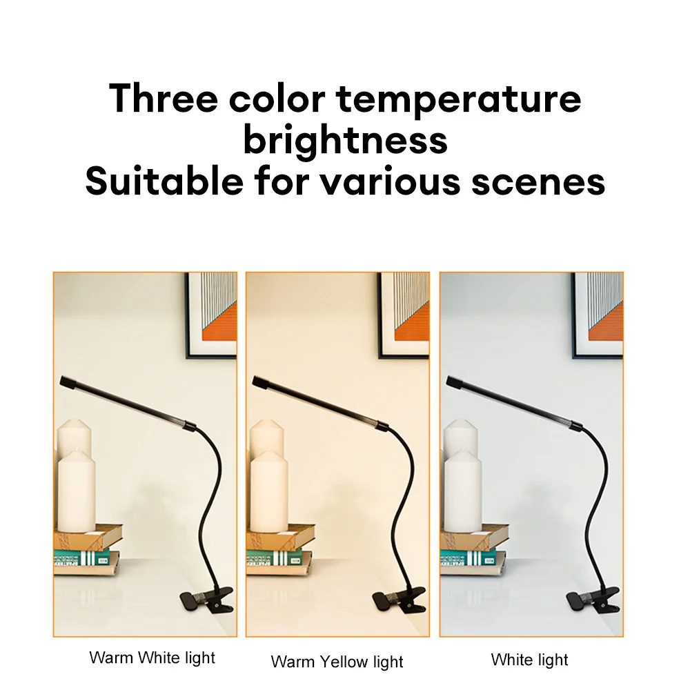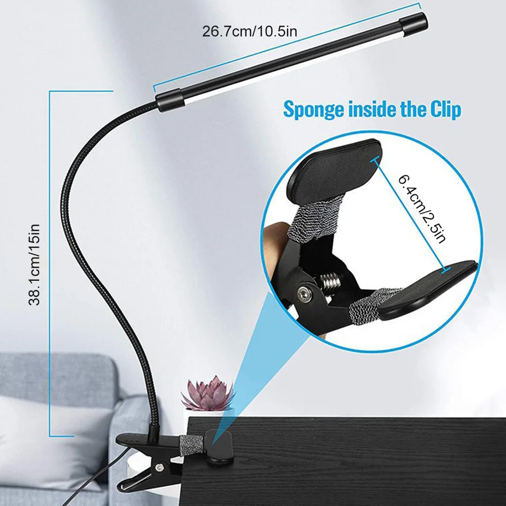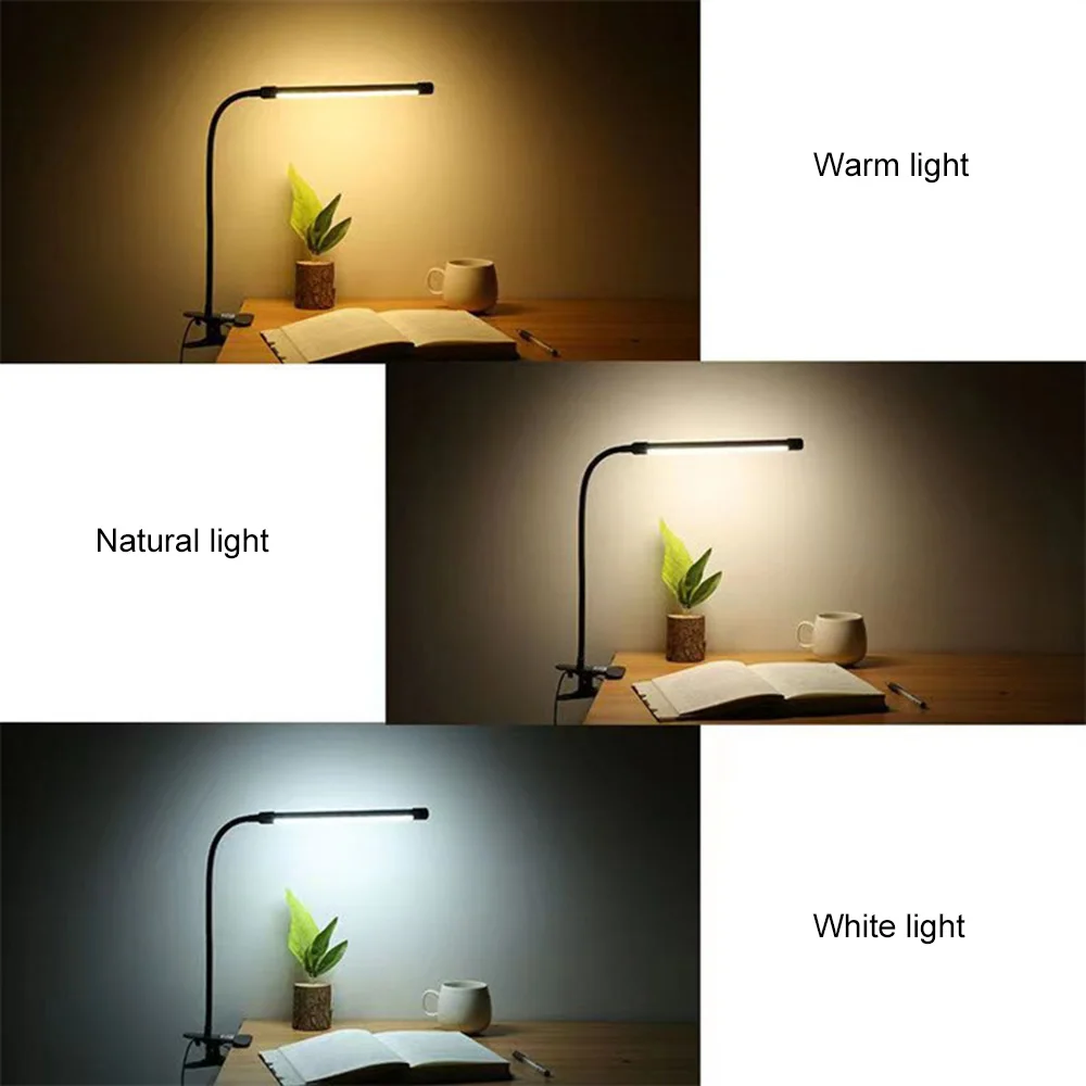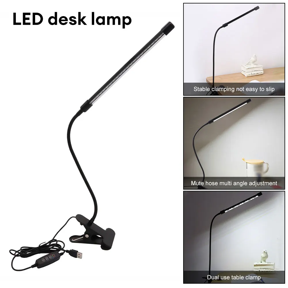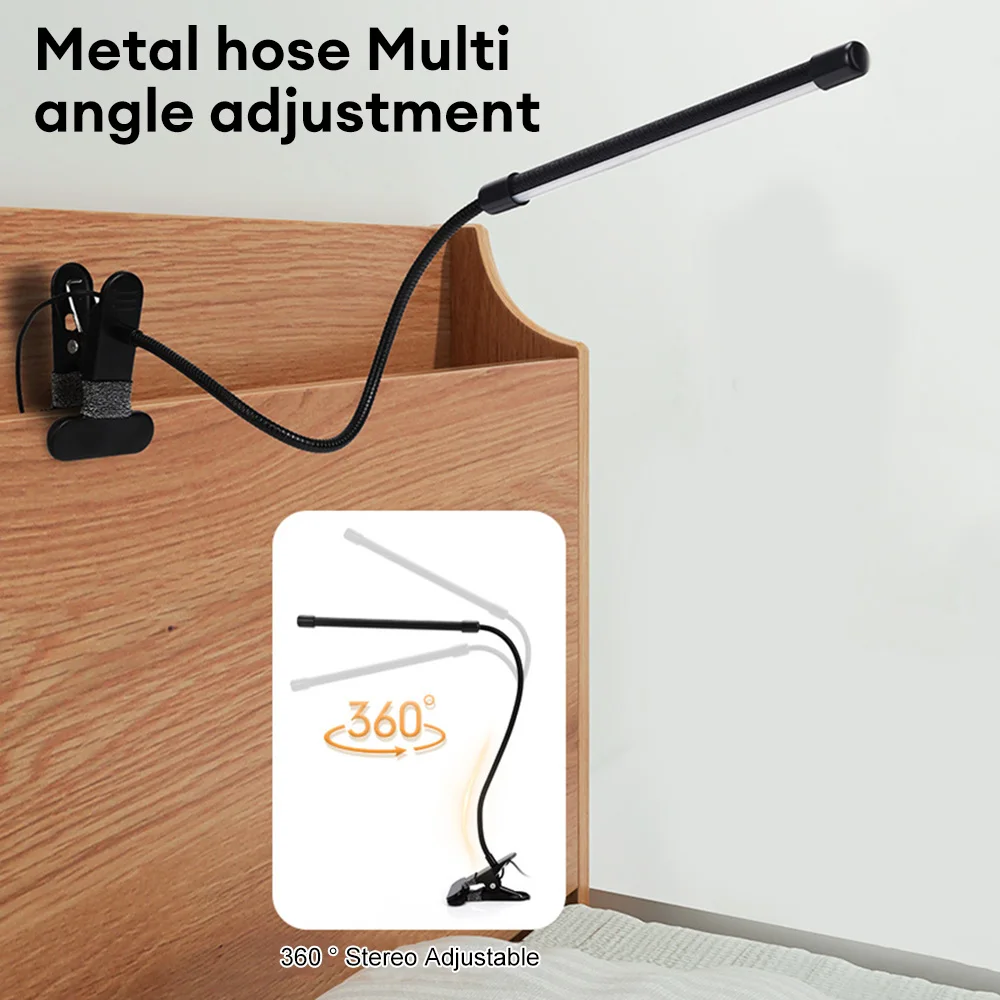 LED Table Lamp 360°Folding Clamp Study Stand Adjustable Lamp USB Powered Eye Protection Desk Light For Bedroom Bedside Bed