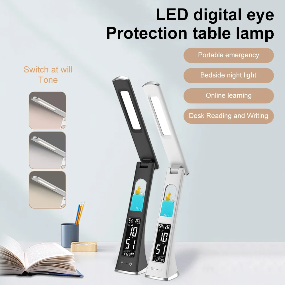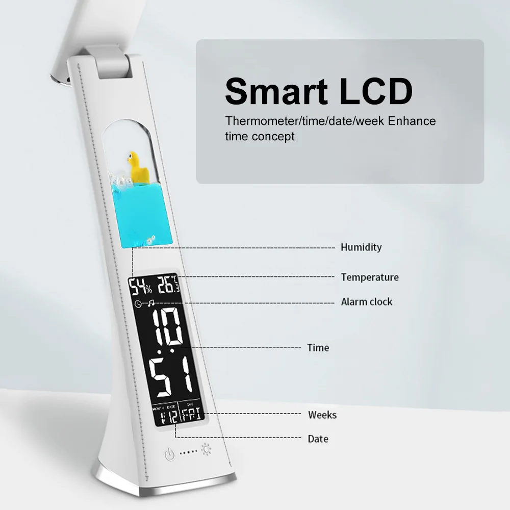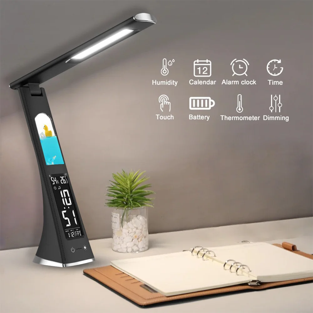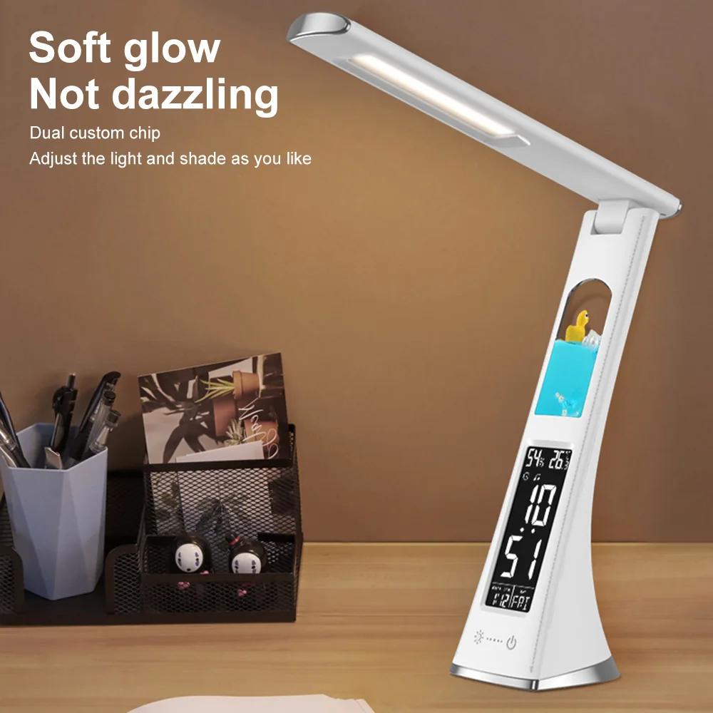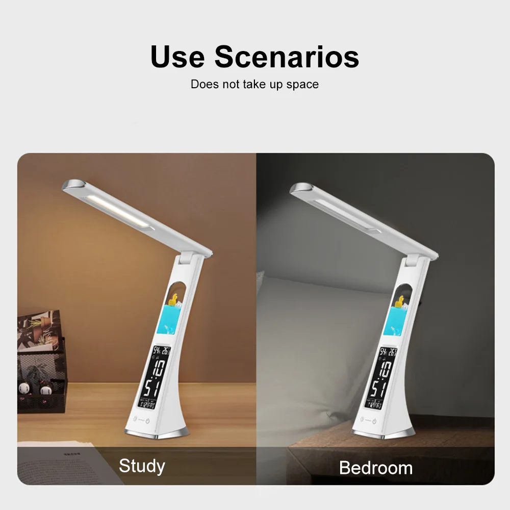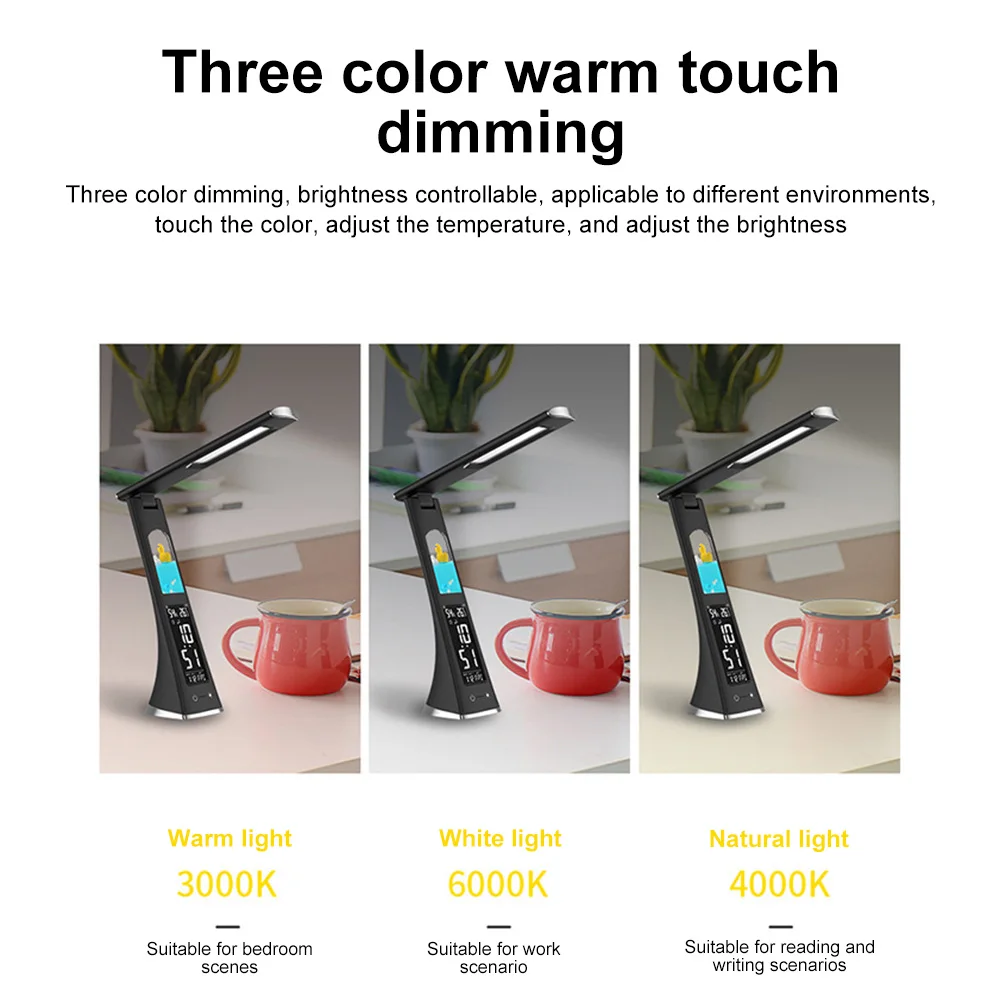 Product name: LED desk lamp, foldable and dimmable touch charging desk lamp with calendar temperature alarm clock, business desk lamp with atmosphere lamp