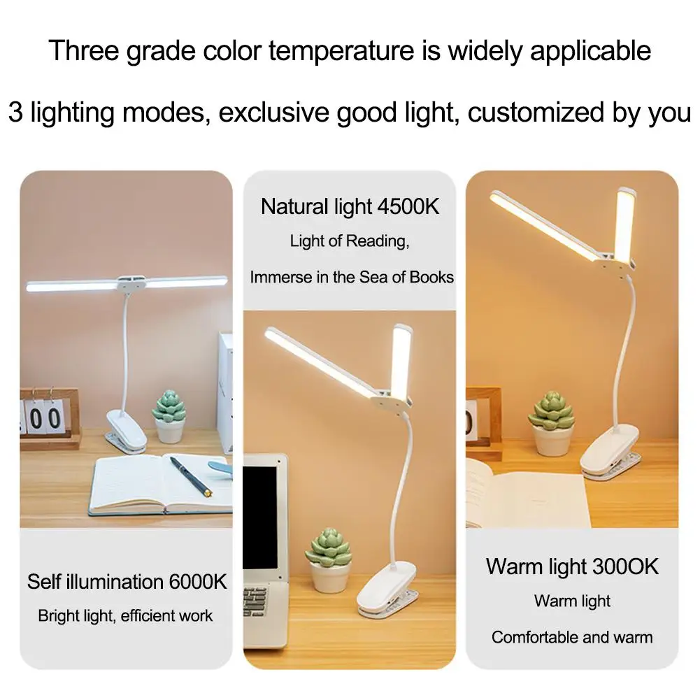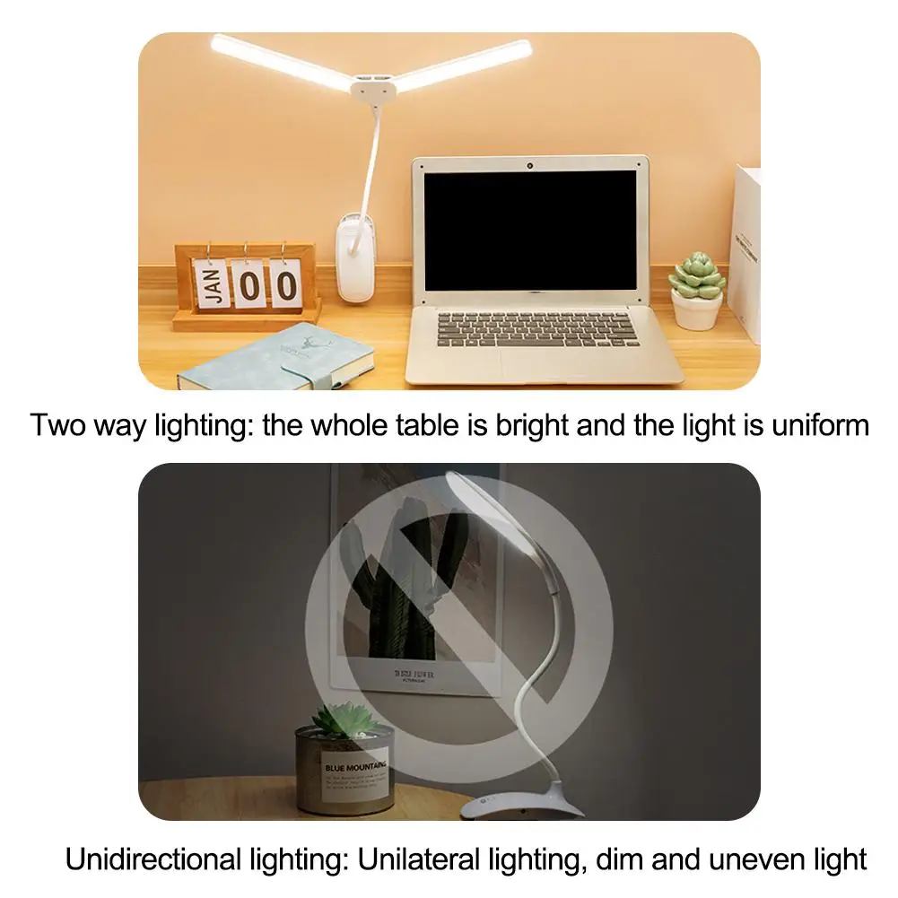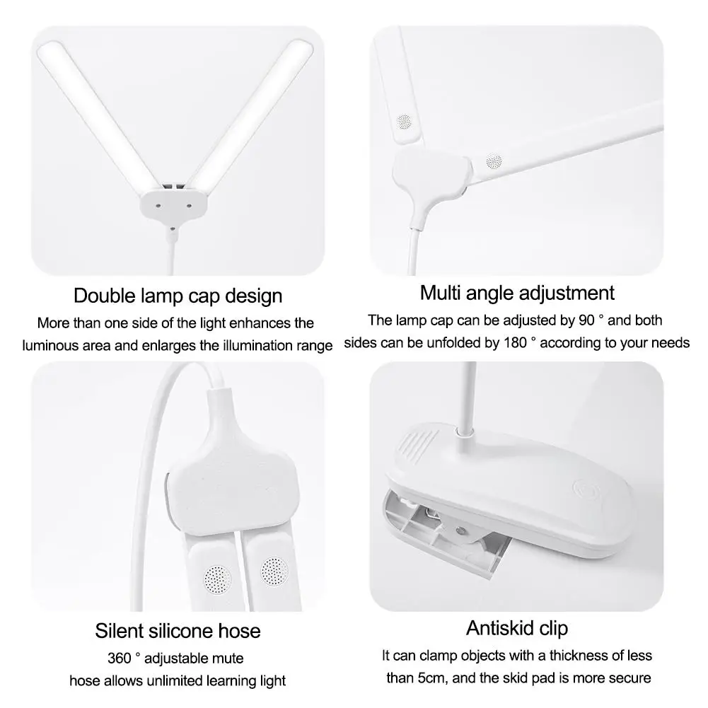 2.Adjustment angle:The desk lamp adopts a 360° adjustable hose, and the angle can be changed at will.The lamp cap can be adjusted by 90 °, and both sides can be unfolded by 180 °.Adjust the light source at any angle as you like.