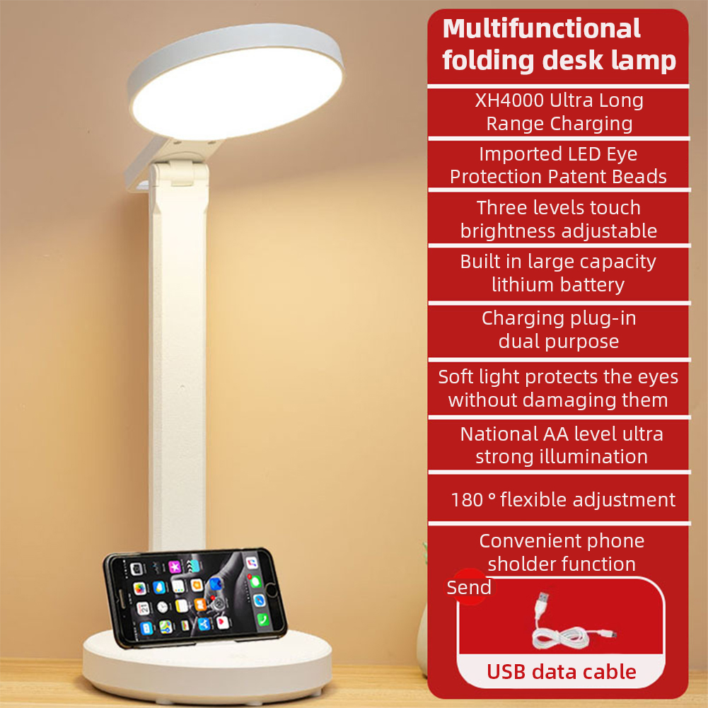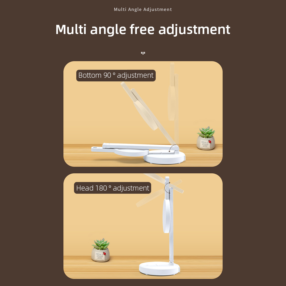 –Rechargeable desk lamp: With built-in battery, you can choose whether to plug it in or not. It is cordless and portable, and can be carried anywhere, especially in case of limited sockets and power outages