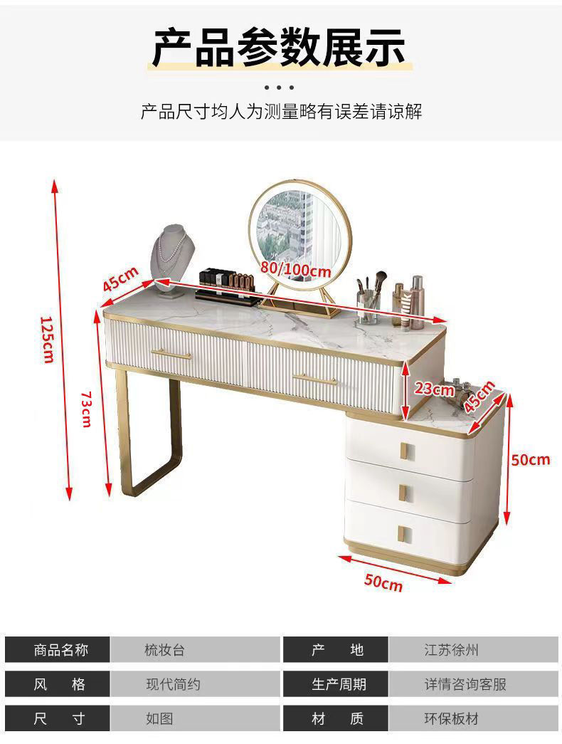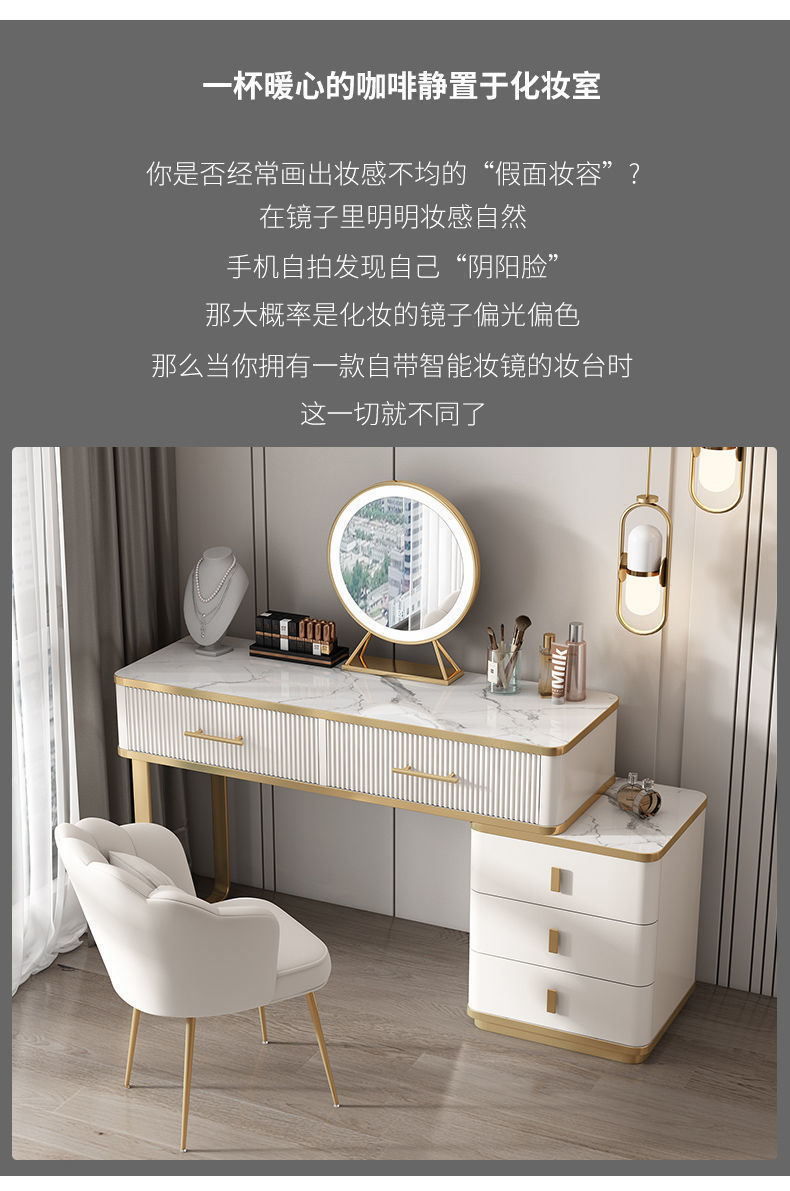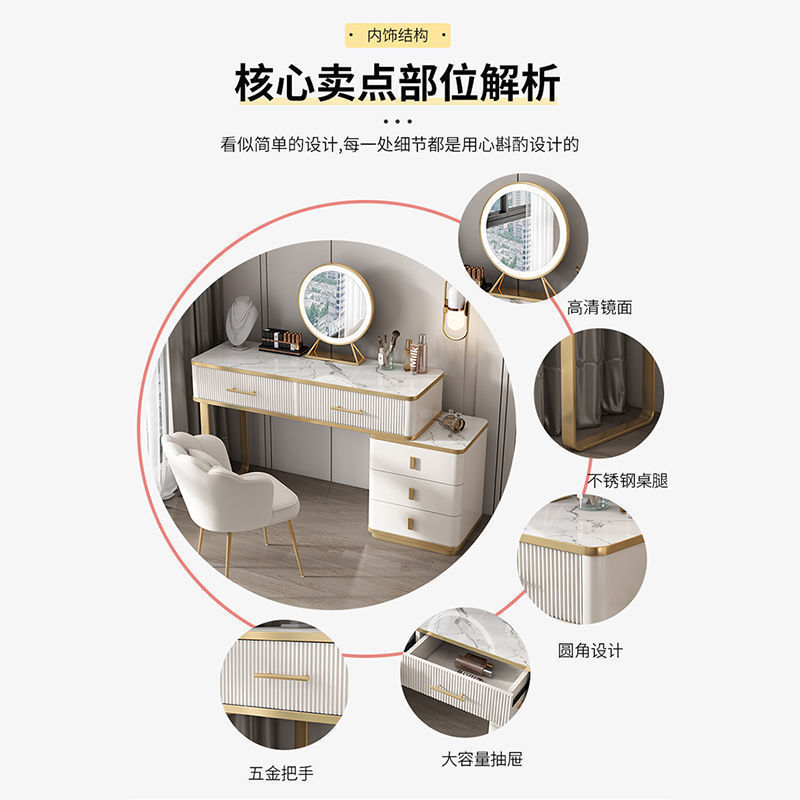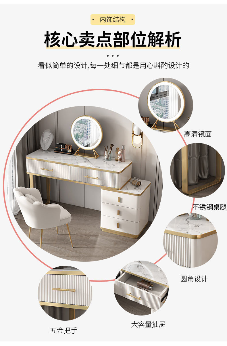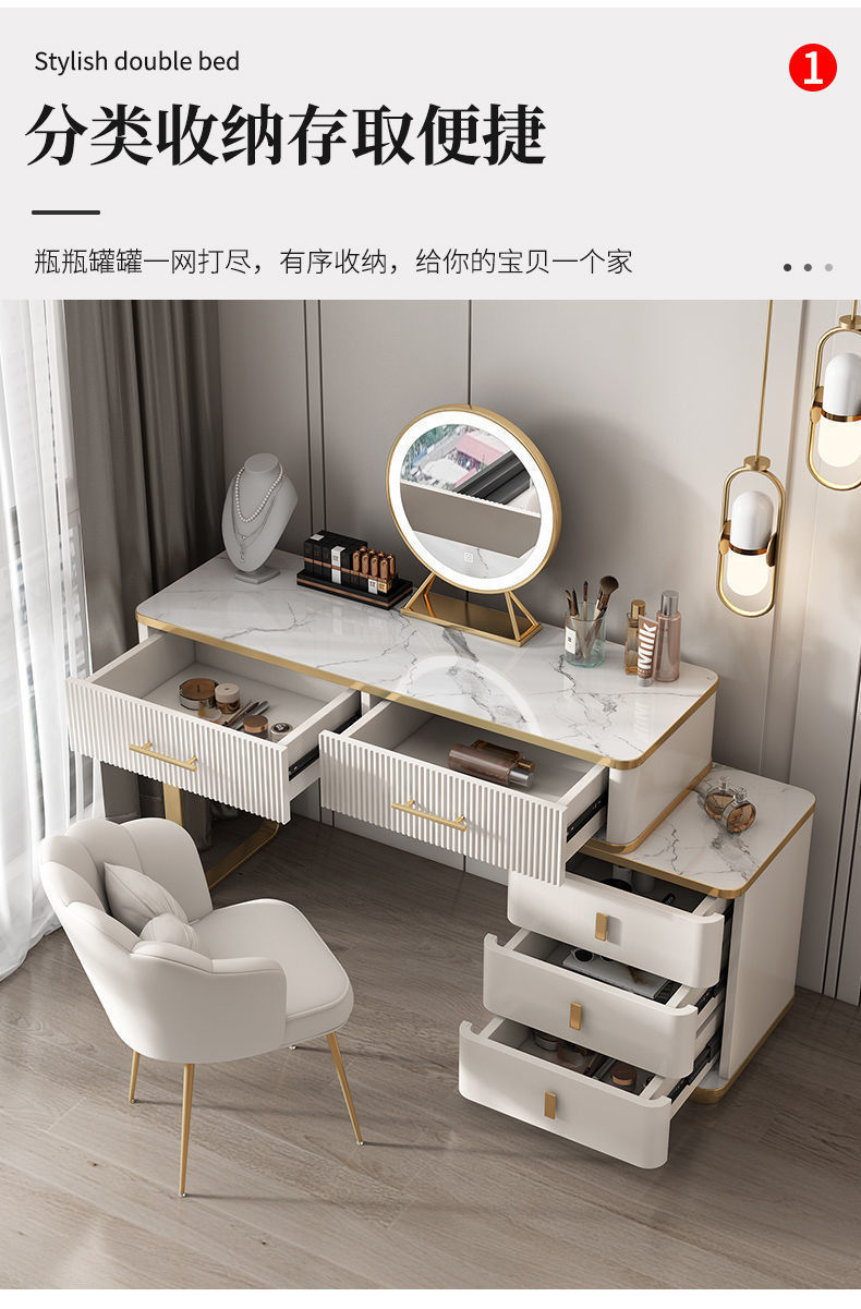 Đèn bàn trang điểm phong cách sang trọng hiện đại tối giản phòng ngủ nhỏ bàn trang điểm lưu trữ tích hợp tấm đá bàn trang điểm bàn gia đình