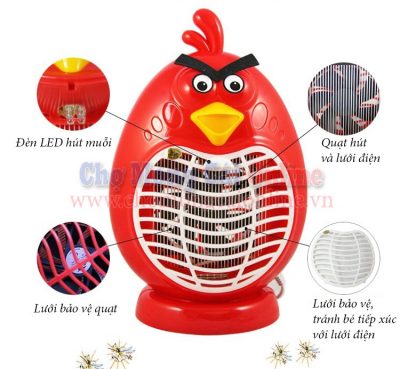 Với thiết kế hình Angry Birds ngộ nghĩnh đáng yêu, màu sắc tươi sáng đèn không chỉ bắt muỗi mà còn là vật trang trí phòng sinh động. Nhà bạn có bé nhỏ đừng lo ngại vì đèn của chúng tôi có 2 lớp lưới nhựa siêu bền chắn tránh những tiếp xúc trực tiếp với lưới điện và quạt. An toàn tuyệt đối và thân thiện với môi trường. Sau khi sử dụng 3 ngày bạn dùng chổi vệ sinh lưới điện loại bỏ xác muỗi sẽ thấy hiệu quả rõ rệt.