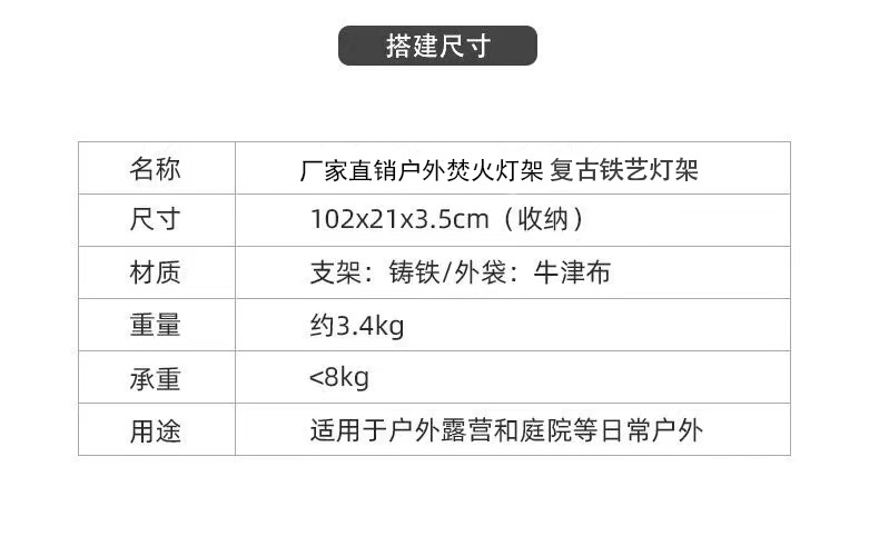 Cắm trại ngoài trời giá đỡ đèn hình tam giác giá để đồ giá đỡ giá đỡ cột đèn cột lửa kết hợp sắt rèn vật tư cắm trại