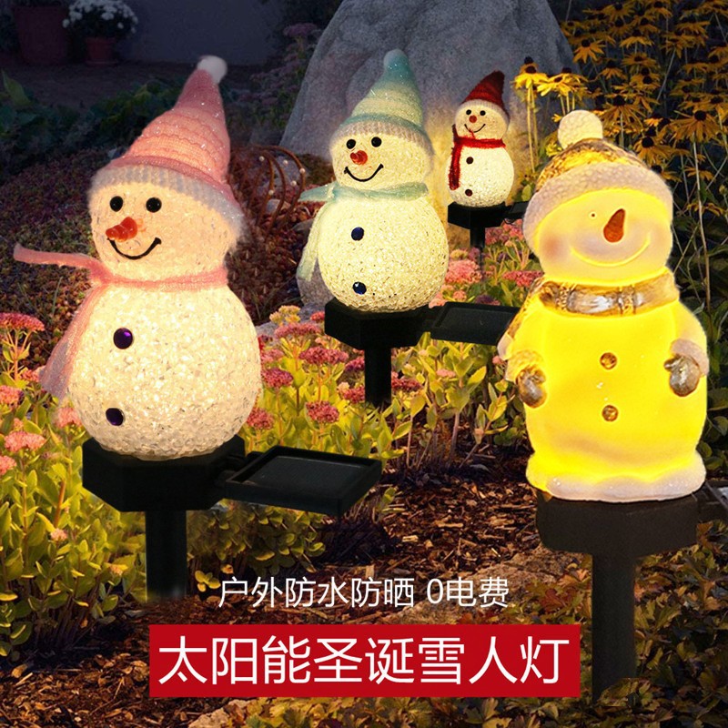 Đèn cắm trên mặt đất người tuyết năng lượng mặt trời Xuất khẩu Trang trí giáng sinh LED bầu không khí ánh sáng ban đêm sân vườn ngoài trời đèn cỏ sân vườn