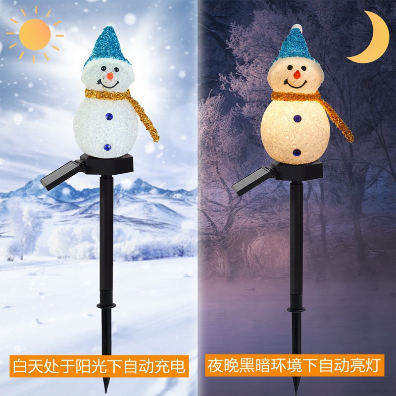 Đèn cắm trên mặt đất người tuyết năng lượng mặt trời Xuất khẩu Trang trí giáng sinh LED bầu không khí ánh sáng ban đêm sân vườn ngoài trời đèn cỏ sân vườn