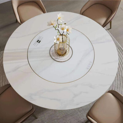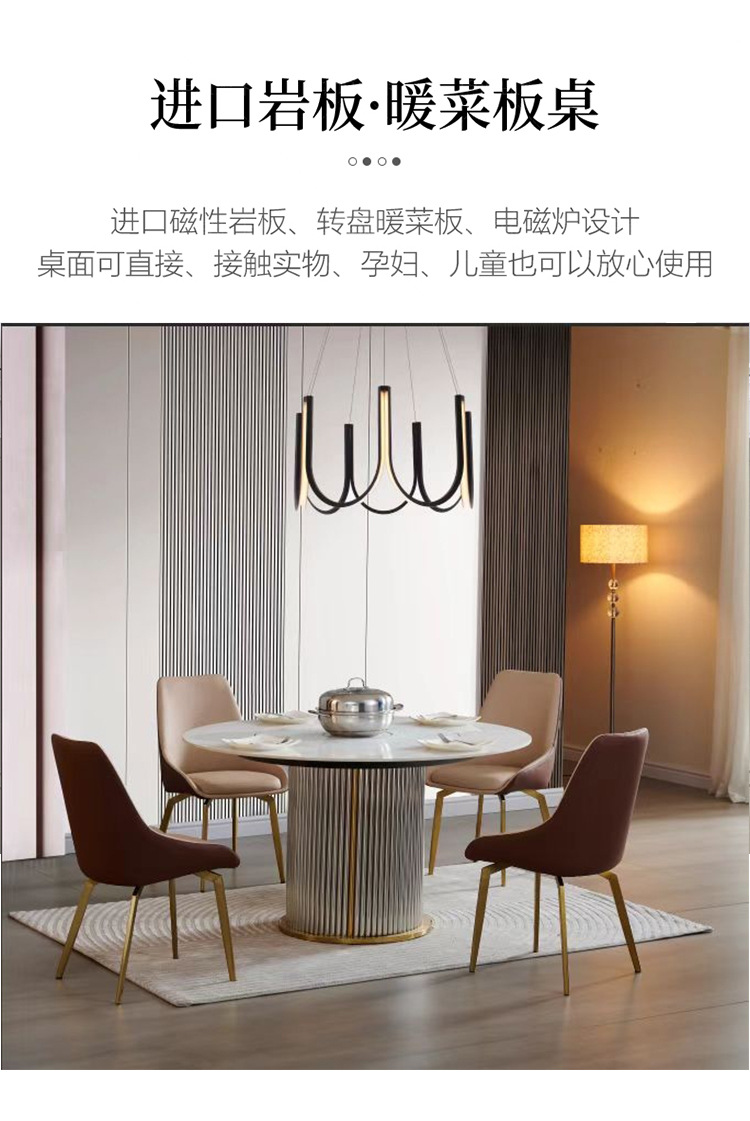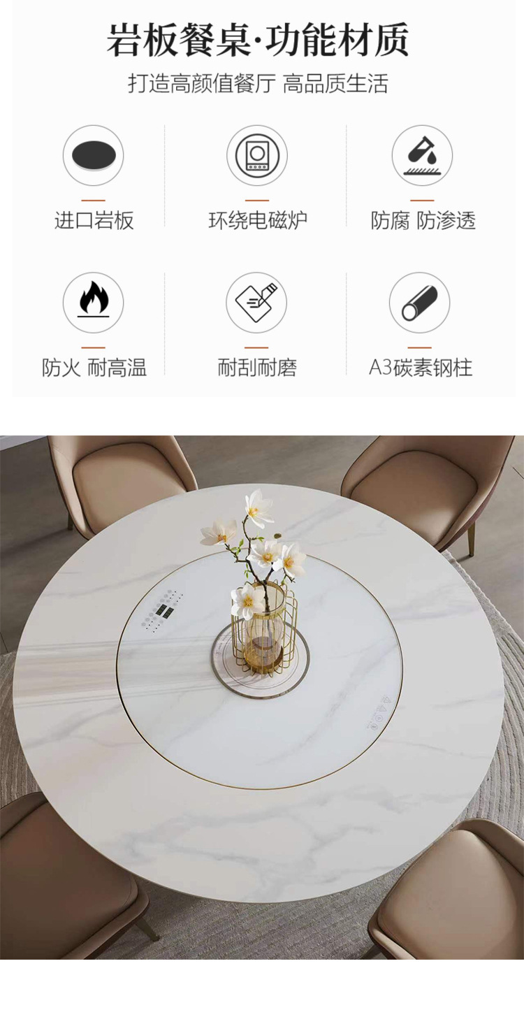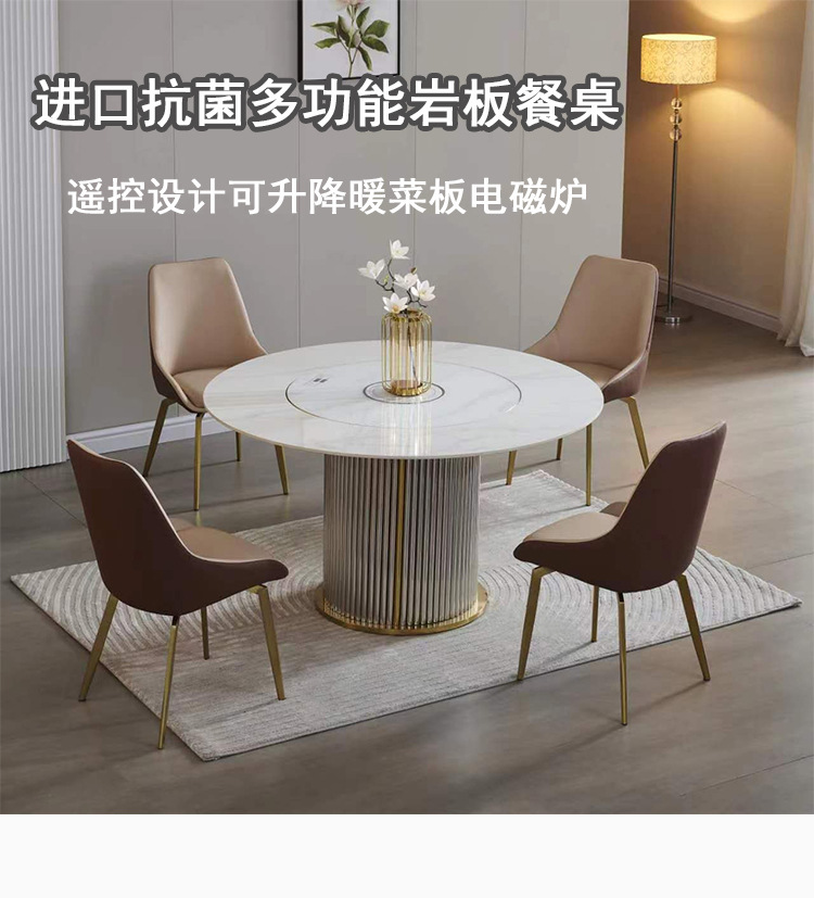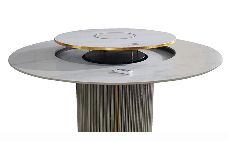 Đèn cảm ứng sang trọng bàn ăn nhà phòng khách tròn hâm nóng đĩa đá sáng có thể nâng lên bàn tròn lẩu đa năng – Bàn ăn nhập khẩu cao cấp
