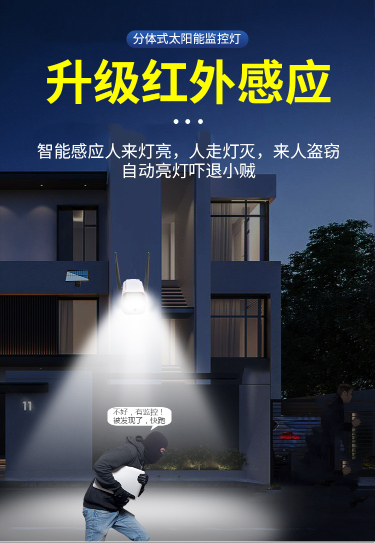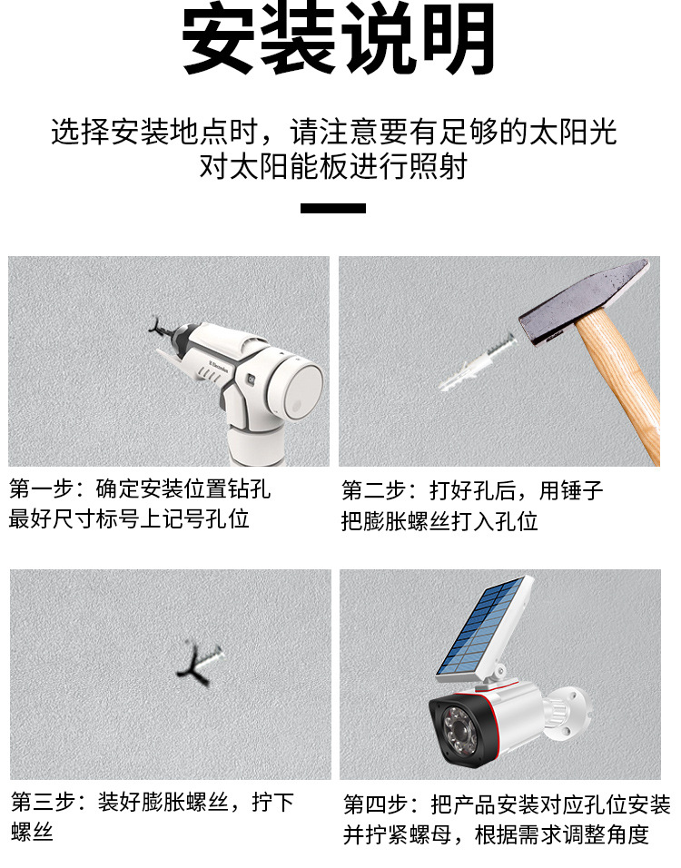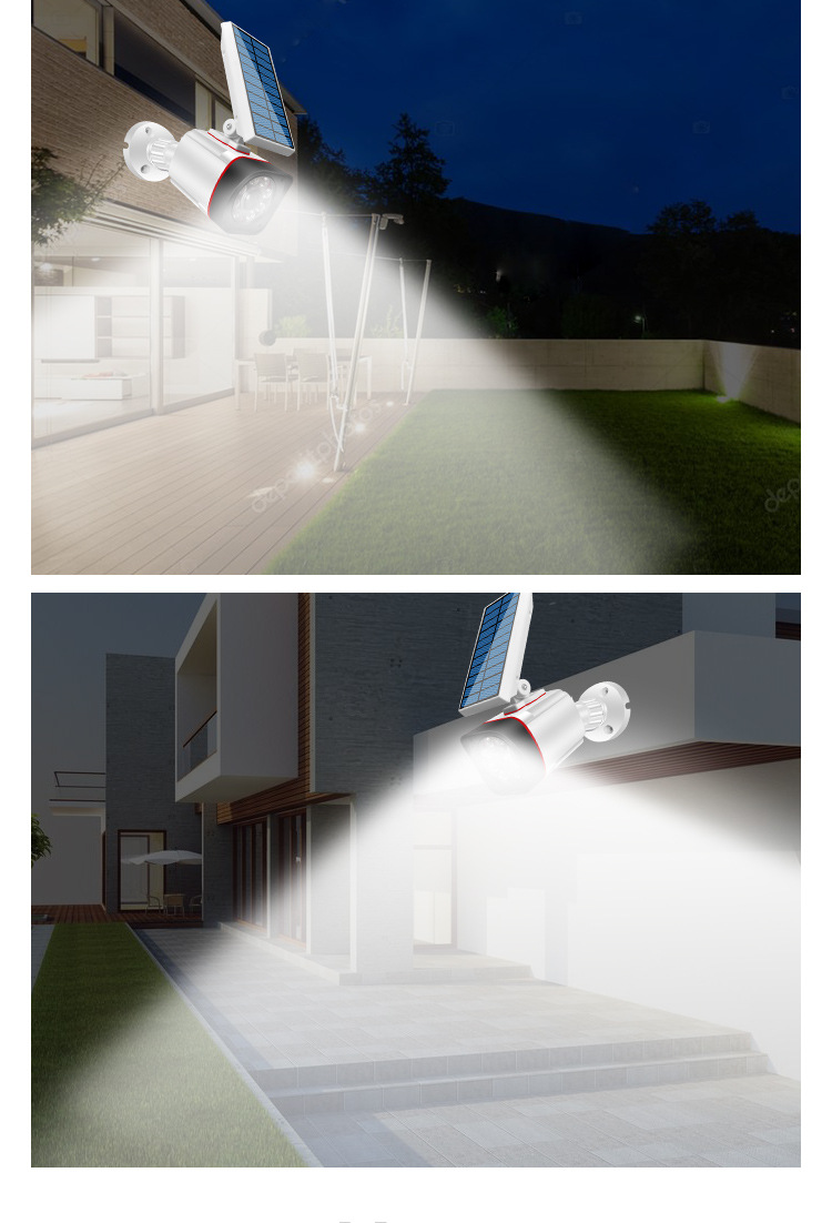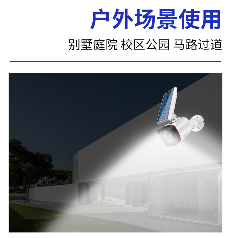 Camera giám sát năng lượng mặt trời mô phỏng với ánh sáng hồng ngoại ngoài trời cơ thể con người cảm ứng ánh sáng sân vườn tối đèn đường tự động