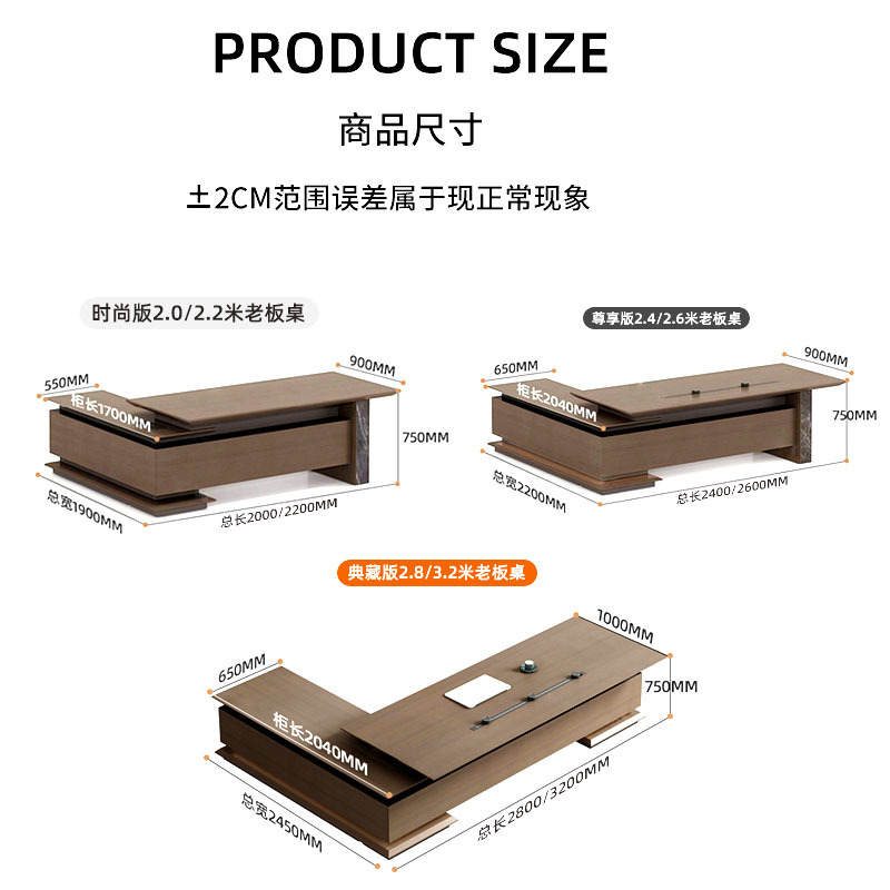 Sơn: Thân thiện với môi trường và không chứa formaldehyde Thương hiệu: Guoxin Furniture Mã sản phẩm: Wep-DA Màu sắc: Bàn giám đốc 2m/Bàn giám đốc 2m+Tủ hồ sơ 2.4/Bàn giám đốc 2.2m/Bàn giám đốc 2.4m/Bàn giám đốc 2.4m+Tủ hồ sơ 2.4 Tủ/ Bàn sếp 2.6m/ Bàn sếp 2.6m+Tủ hồ sơ 3m/ Bàn sếp 2.8m/ Bàn sếp 2.8m+ Tủ hồ sơ 3m/ Bàn sếp 3.2m/ Bàn sếp 3.2m+ Bàn sếp 3.8m/ Bàn sếp 3.2m+ 3.8 m tủ hồ sơ Danh mục sản phẩm: Bàn điều hành Phụ kiện phần cứng Mô tả: Thanh trượt im lặng ba phần, khóa mã vân tay cao cấp, máy tính để bàn có thanh ray điện Model: Wep-DA Chứng nhận: Không Có giao hàng tận nơi hay không: Giao hàng tận nơi ở tầng dưới Có hay không cung cấp dịch vụ lắp đặt: Không Các dịp áp dụng: Văn phòng Cho dù đó là thông thường Người nộp thuế: Có Dải cạnh: Veneer sơn Thủ công Chất liệu: Bảng điều khiển Không gian: Địa điểm thương mại Chất liệu bảng điều khiển: gỗ Thuộc tính thương mại: Thương mại nội địa có thể bị từ chối Làm: Không Cho dù xuất khẩu xuyên biên giới Nguồn cung cấp đặc biệt: Không Phong cách: Sang trọng nhẹ nhàng