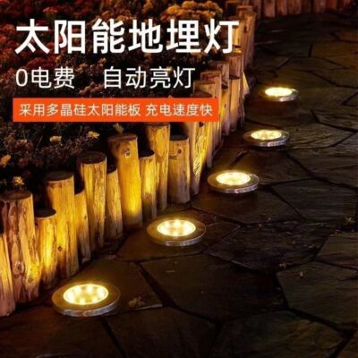 Đèn chôn thép không gỉ năng lượng mặt trời sân vườn ngoài trời cắm đèn phong cảnh hộ gia đình đèn sân vườn nông thôn sân phẳng đèn