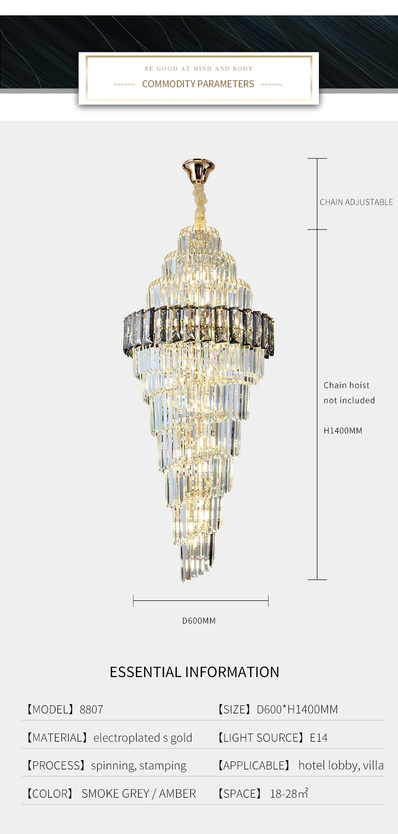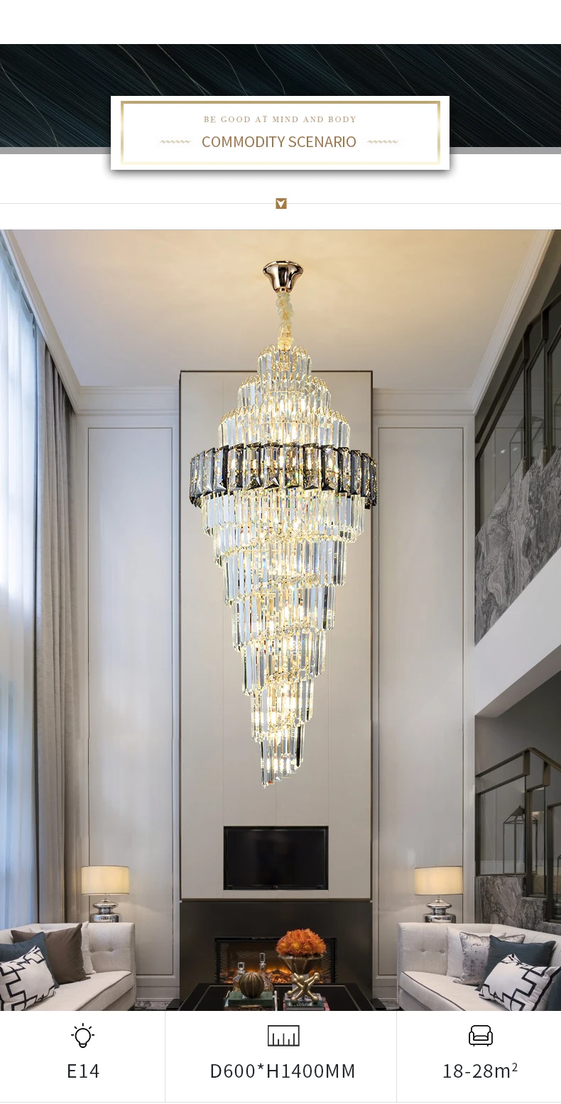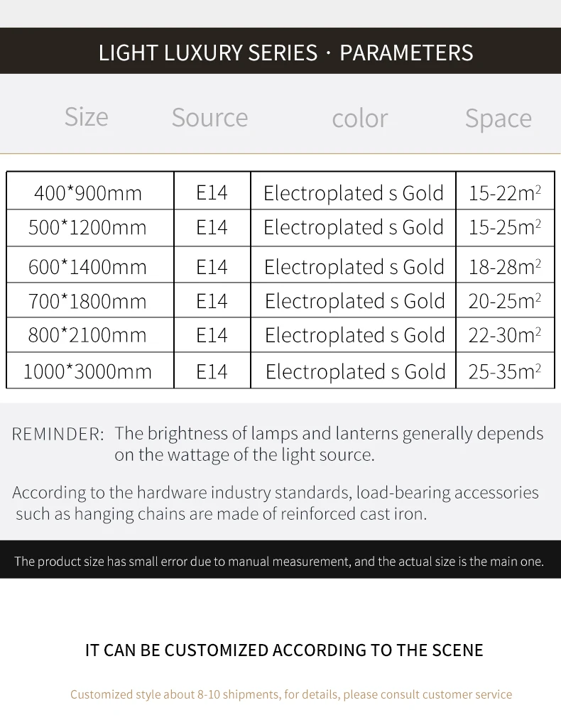 Đèn chùm hình nhánh biệt thự rỗng đèn chùm dài song công ánh sáng cầu thang sang trọng ánh sáng hội trường triển lãm ánh sáng pha lê. Quý khách có nhu cầu mua Đèn chùm nhập khẩu vui lòng liên hệ với chúng tôi để được tư vấn hỗ trợ. Dịch vụ mua hàng Trung Quốc sẽ hỗ trợ quý khách mua hàng từ nhà cung cấp và giao tới tận tay quý khách hàng..Điện áp:90-260V Nguồn điện:AC Loại lắp đặt:Semiflush Mount Loại bóng:Kính trong suốt Hướng bóng:Lên và xuống Có thể điều chỉnh độ sáng:Có Lớp hoàn thiện:Được đánh bóng Loại công tắc:Không có Loại đế:E14 Phong cách:Phong cách hiện đại Nguồn sáng:Bóng đèn LED Thân đèn Chất liệu: nhôm Chứng nhận: CCC Là bóng đèn Bao gồm: Có Tên thương hiệu: JLUN Xuất xứ: Trung Quốc Đại lục Loại sản phẩm: Đèn chùm
