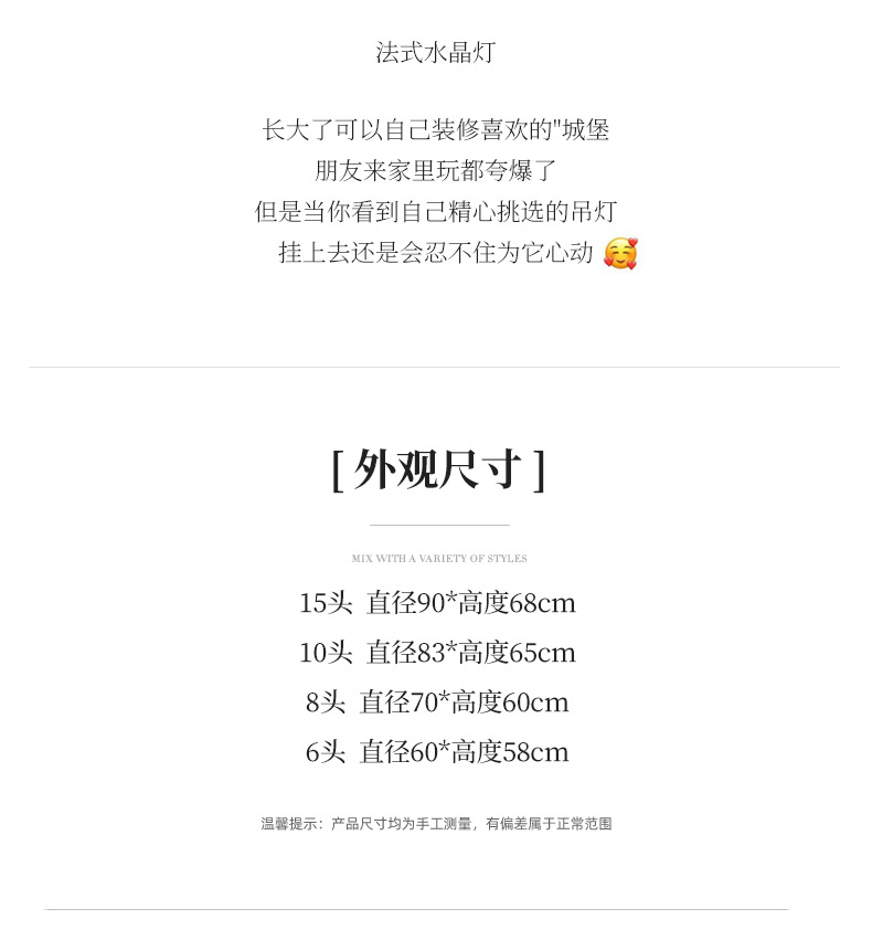 Đèn chùm pha lê sang trọng kiểu Pháp, phòng khách theo phong cách cung điện cổ điển, đèn phòng ăn cá tính sáng tạo, đèn biệt thự khí quyển cao cấp. Quý khách có nhu cầu mua Đèn chùm nhập khẩu vui lòng liên hệ với chúng tôi để được tư vấn hỗ trợ. Dịch vụ mua hàng Trung Quốc sẽ hỗ trợ quý khách mua hàng từ nhà cung cấp và giao tới tận tay quý khách hàng..Model: Xem mô tả Liệu có bằng sáng chế hay không: Không Chứng nhận: Không Liệu nó có được giao đến tận nhà của bạn hay không: Giao hàng đến điểm nhận hàng Liệu có dịch vụ lắp đặt hay không: Không Liệu nó có dành riêng cho xuất khẩu xuyên biên giới hay không Cung cấp: Không Không gian áp dụng : Phòng khách/phòng ngủ/phòng ngủ Nơi xuất xứ: Trung Sơn Số mặt hàng: tb-737710883632 Thương hiệu: Mingqi 3C Số chứng chỉ: 2021011001382712 Các tình huống áp dụng: Địa điểm trong nhà Màu ánh sáng: Pha lê K9 hạng nhất/Pha lê Asfor Ai Cập nhập khẩu/Pha lê Asfor Ai Cập nhập khẩu Vùng chiếu sáng: 30㎡ trở lên Công suất nguồn sáng: [60CM] 6 đầu/[70CM] 8 đầu/[83CM] 10 đầu/[90CM] 15 đầu/[100CM] 18 đầu/[120CM] 24 đầu/[120CM] 24 đầu Chất liệu thân đèn: kính Có thể điều chỉnh độ cao: 60 Chất liệu chao đèn: Thủy tinh Loại nguồn sáng: LED Số lượng đầu đèn: Đèn chùm nhiều đầu Điện áp: 220V Loại thông minh: Khác Phong cách: Châu Âu Loại đèn chùm: Nhánh Loại: Đèn chùm