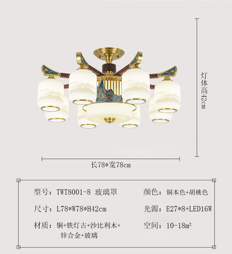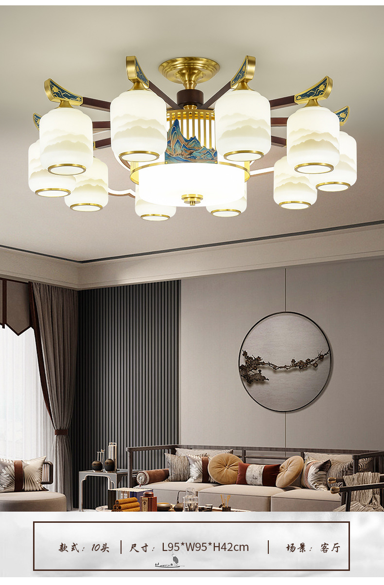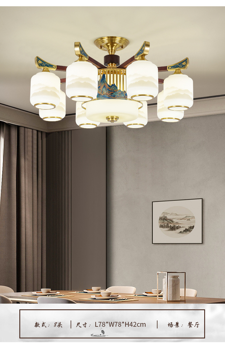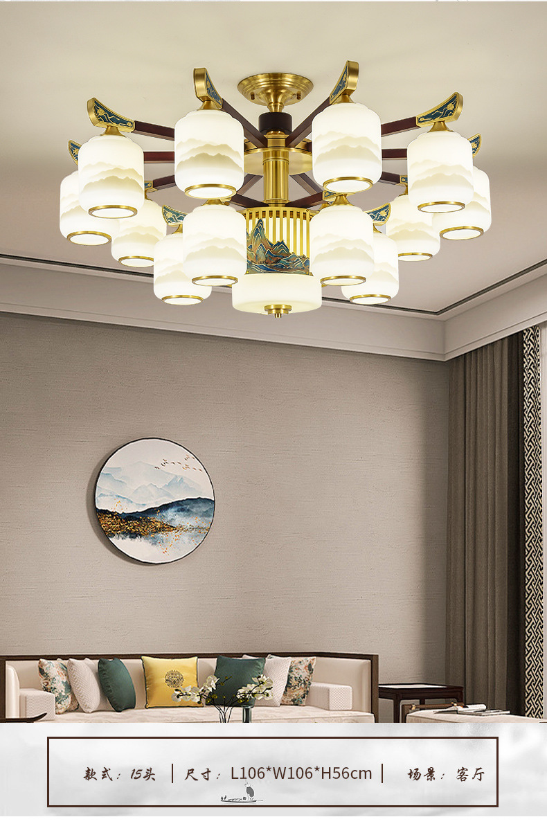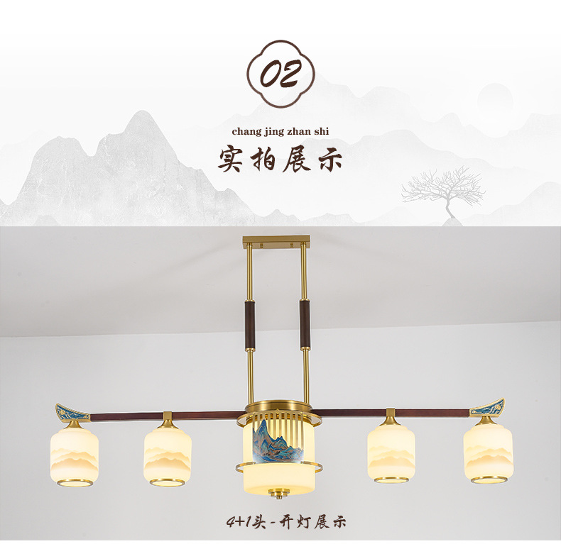 Đèn chùm phong cách Trung Quốc mới tất cả các phòng khách bằng gỗ nguyên khối bằng đồng không khí đơn giản Phong cách Trung Quốc cao cấp đèn trần nhà hàng biệt thự phong cách Trung Quốc