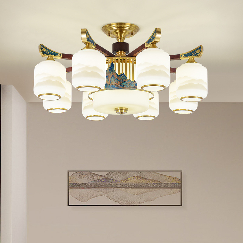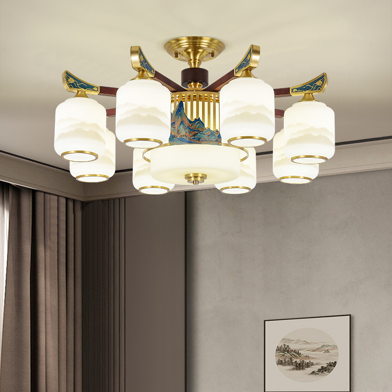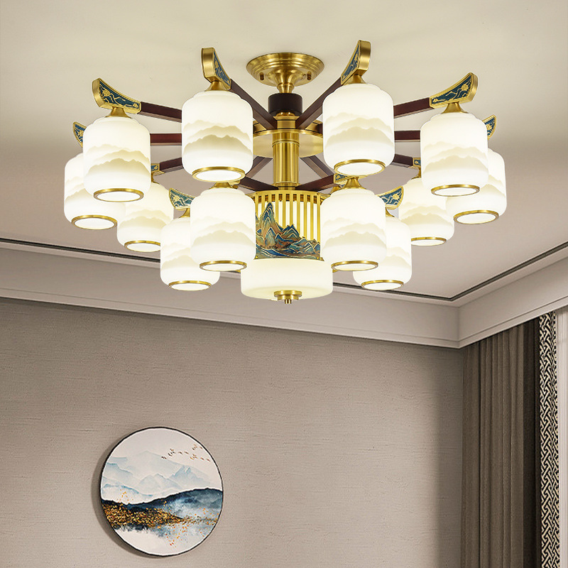 Đèn chùm phong cách Trung Quốc mới tất cả các phòng khách bằng gỗ nguyên khối bằng đồng không khí đơn giản Phong cách Trung Quốc cao cấp đèn trần nhà hàng biệt thự phong cách Trung Quốc