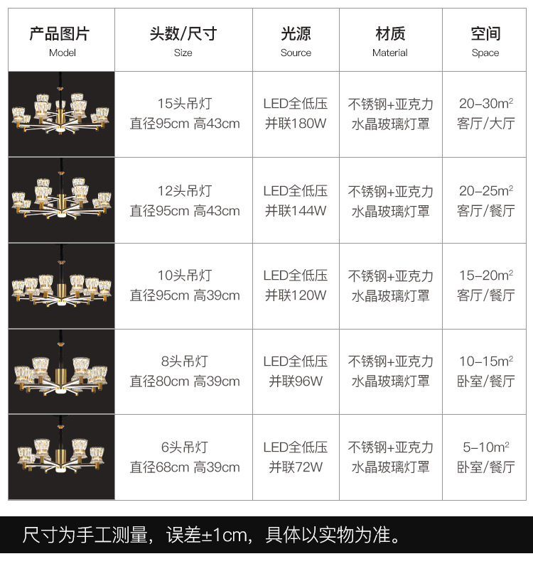 Đèn chùm phòng khách hiện đại ánh sáng đơn giản sang trọng đèn chùm pha lê mới nhà hàng khách sạn đèn nhà phòng ngủ đèn Trung Sơn đèn. Quý khách có nhu cầu mua Đèn chùm nhập khẩu vui lòng liên hệ với chúng tôi để được tư vấn hỗ trợ. Dịch vụ mua hàng Trung Quốc sẽ hỗ trợ quý khách mua hàng từ nhà cung cấp và giao tới tận tay quý khách hàng..Có bằng sáng chế hay không: Không Chứng nhận: Không Liệu nó có được giao đến tận nhà của bạn hay không: Giao đến tầng dưới Liệu có dịch vụ lắp đặt hay không: Không Liệu nó có dành riêng cho xuất khẩu xuyên biên giới Nguồn cung cấp: Có Không gian áp dụng: Phòng khách/phòng ăn /nhà hàng Nơi xuất xứ: Zhongshan Số mặt hàng: 8585, 8586 Thương hiệu :Yaohuo 3C Số chứng chỉ: 2020171001003635 Các tình huống áp dụng: Nội thất gia đình Nền tảng hạ nguồn chính: Amazon/AliExpress/Trạm độc lập/Trạm độc lập Màu đèn: 8586 Chụp đèn pha lê 6 đầu (đèn) tay phát sáng)/8586 Chao đèn pha lê 8 đầu (Cánh đèn phát sáng)/Chụp đèn pha lê 10 đầu Model 8586 (Cánh đèn phát sáng)/Chụp đèn pha lê 12 đầu Model 8586 (Cánh đèn phát sáng)/Mẫu 8586 15 đầu chao đèn pha lê (Cánh đèn sáng lên)/Gói 1 cho hai phòng/Gói 2 cho hai phòng/Gói 3 cho hai phòng ngủ và hai phòng khách/Gói 4 cho hai phòng ngủ và hai phòng khách/Gói 4 cho hai phòng ngủ và hai phòng khách/Gói 5 cho ba phòng ngủ và hai phòng khách/Gói 6 ba phòng ngủ và hai phòng khách /Gói 7 bốn phòng ngủ và hai phòng khách /Gói 8 bốn phòng ngủ và hai phòng khách /Chao đèn pha lê 6 đầu kiểu 8585 (cánh đèn dạ quang)/Chụp đèn pha lê 8 đầu Model 8585 (Cánh đèn dạ quang) /Chụp đèn pha lê 10 đầu Model 8585 (Cánh đèn phát sáng)/Chụp đèn pha lê 12 đầu Model 8585 (Cánh đèn phát sáng)/Chụp đèn pha lê 15 đầu Model 8585 (Cánh đèn phát sáng) /Chao đèn pha lê 15 đầu Model 8585 (Đèn cánh tay đèn) ) Vùng chiếu sáng: 15㎡-30㎡ Công suất nguồn sáng: điều chỉnh độ sáng ba màu/điều chỉnh độ sáng vô cấp (hỗ trợ Tmall Elf)/điều chỉnh độ sáng vô cấp (hỗ trợ Tmall Elf) Vật liệu thân đèn: Hợp kim nhôm Độ cao có thể điều chỉnh: 0,5 Vật liệu chao đèn: Pha lê Loại nguồn sáng : LED Số đầu đèn: Đèn chùm nhiều đầu Điện áp: 220V Loại thông minh: Không thông minh/Tmall Elf/Tmall Elf Kiểu dáng: Đèn chùm đơn giản hiện đại Loại: Đèn chùm pha lê Khu vực bán hàng chính: Bắc Mỹ/Đông Bắc Á/Trung Đông/Trung Đông Loại : Đèn treo