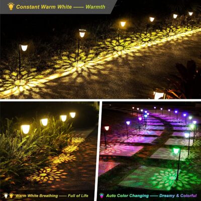 太阳能地插灯系列:常亮暖白色、暖白色呼吸灯、RGB渐变。