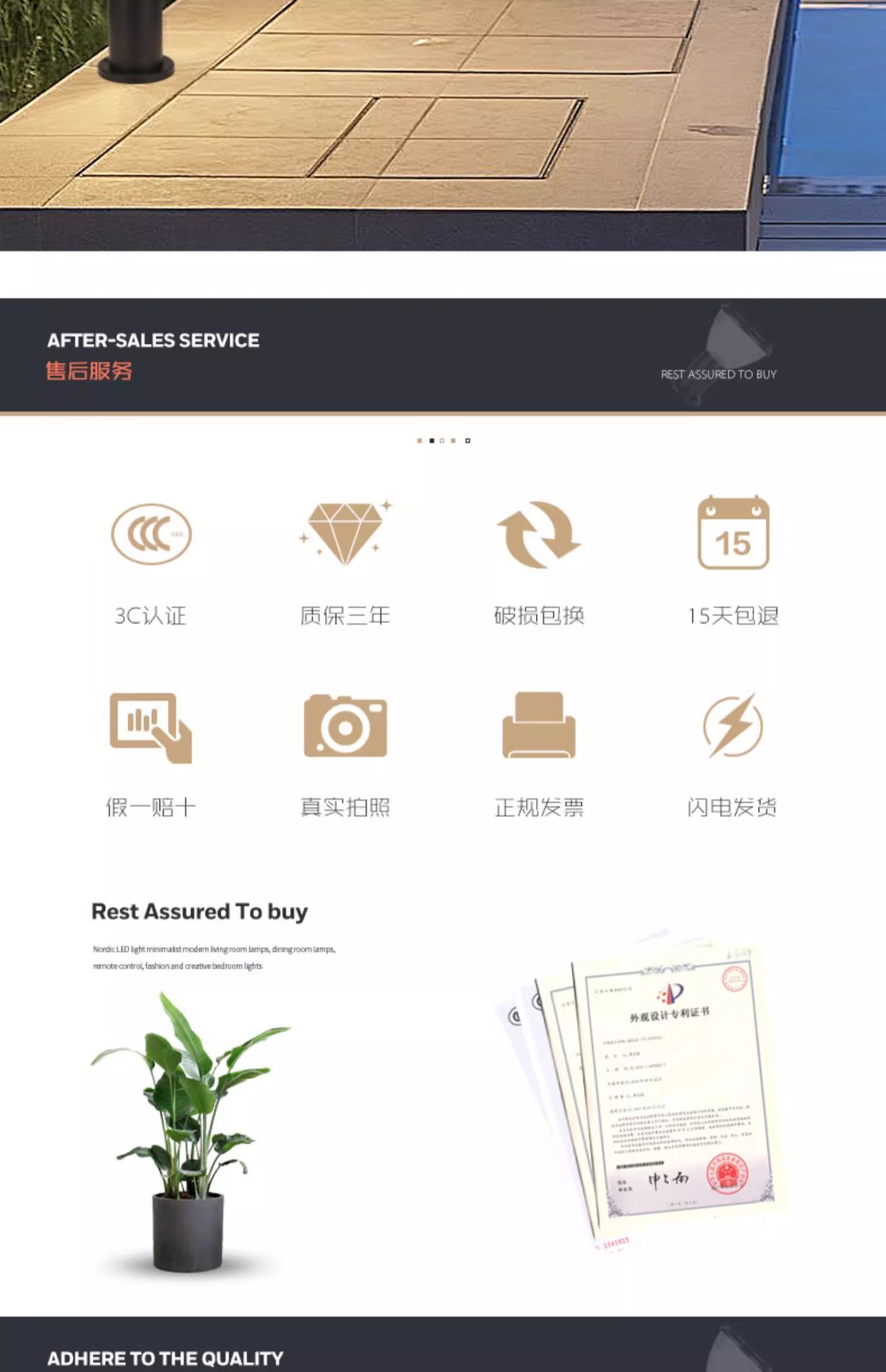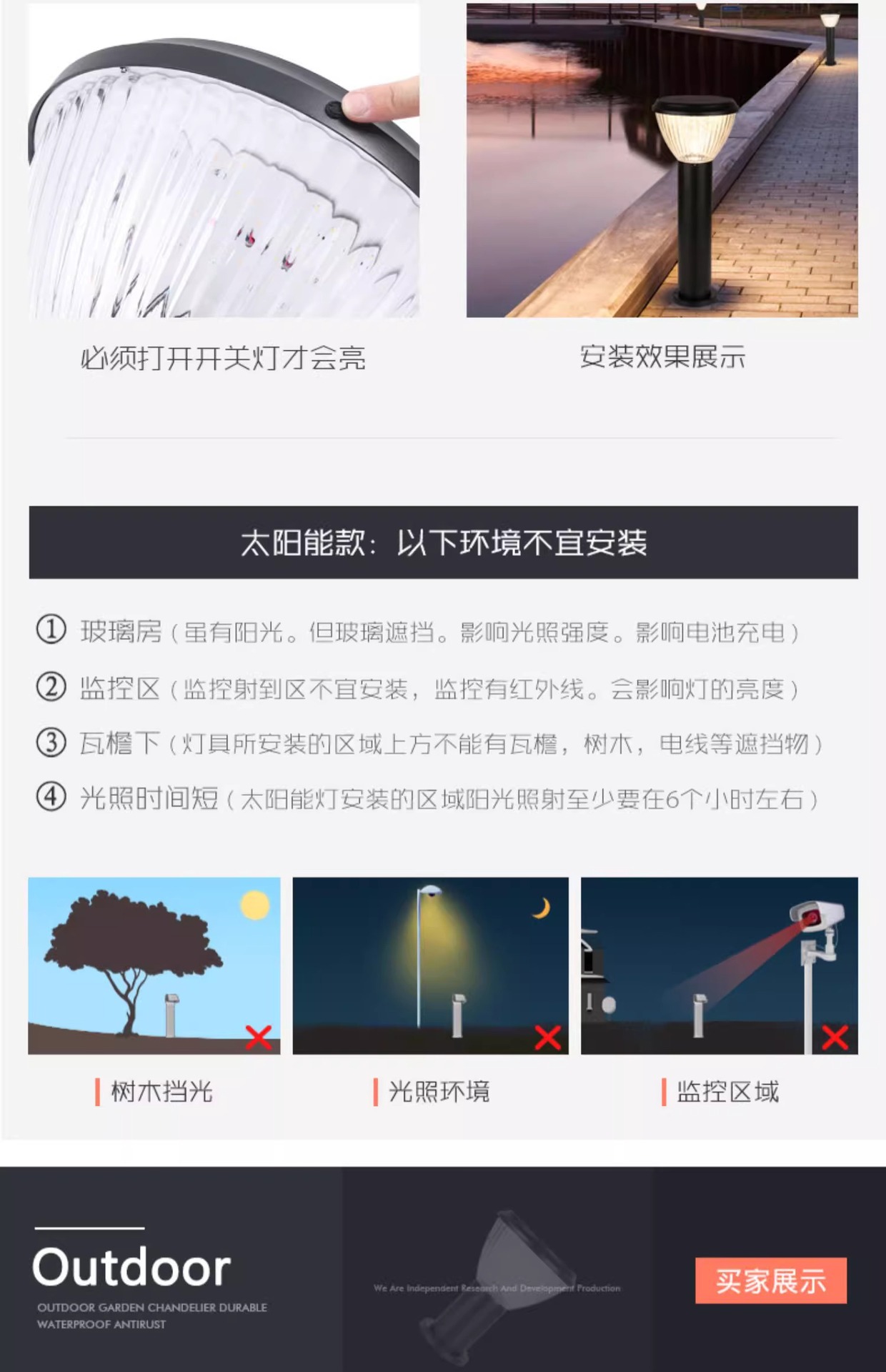 Đèn cỏ năng lượng mặt trời sân trang trí bố trí bầu không khí ngoài trời đèn sân vườn biệt thự ngoài trời không thấm nước sân cỏ đèn. Quý khách có nhu cầu mua Đèn ngoài trời nhập khẩu vui lòng liên hệ với chúng tôi để được tư vấn hỗ trợ. Dịch vụ mua hàng Trung Quốc sẽ hỗ trợ quý khách mua hàng từ nhà cung cấp và giao tới tận tay quý khách hàng..Nơi xuất xứ: Zhongshan Số sản phẩm: CPD4104 Thương hiệu: Model khác: CPD4104 Nhiệt độ màu: Model năng lượng mặt trời 35CM (Ghi chú nhiệt độ màu)/Mẫu điện chính 35CM (Ghi chú nhiệt độ màu)/Mẫu năng lượng mặt trời 65CM (Ghi chú nhiệt độ màu)/Mẫu điện chính 65CM (Ghi chú nhiệt độ màu)/Mẫu năng lượng mặt trời 85CM (Ghi chú nhiệt độ màu)/Mẫu điện chính 85CM (Ghi chú nhiệt độ màu)/Mẫu điện chính 85CM (Ghi chú nhiệt độ màu) Có bằng sáng chế hay không: Không có chứng nhận: Không có Mã đặt hàng: CPD4104 Dòng chính nền tảng: ebay/Amazon/wish/AliExpress/Independent Station/LAZADA/Khác/Khác Đây có phải là người nộp thuế chung không: Có Công suất nguồn sáng: 7W Chất liệu: Nhôm Cấp độ bảo vệ: IP65 Xử lý và tùy chỉnh: Có Đây có phải là sản phẩm độc quyền xuất khẩu xuyên biên giới nguồn cung cấp: Có Model: phong cách Trung Quốc Khu vực bán hàng chính: Châu Phi/Châu Âu/Nam Mỹ/Đông Nam Á/Bắc Mỹ/Đông Bắc Á/Trung Đông/Khác/Khác Thời gian chiếu sáng liên tục: hơn 36 giờ Có nên nhập khẩu hay không: Không
