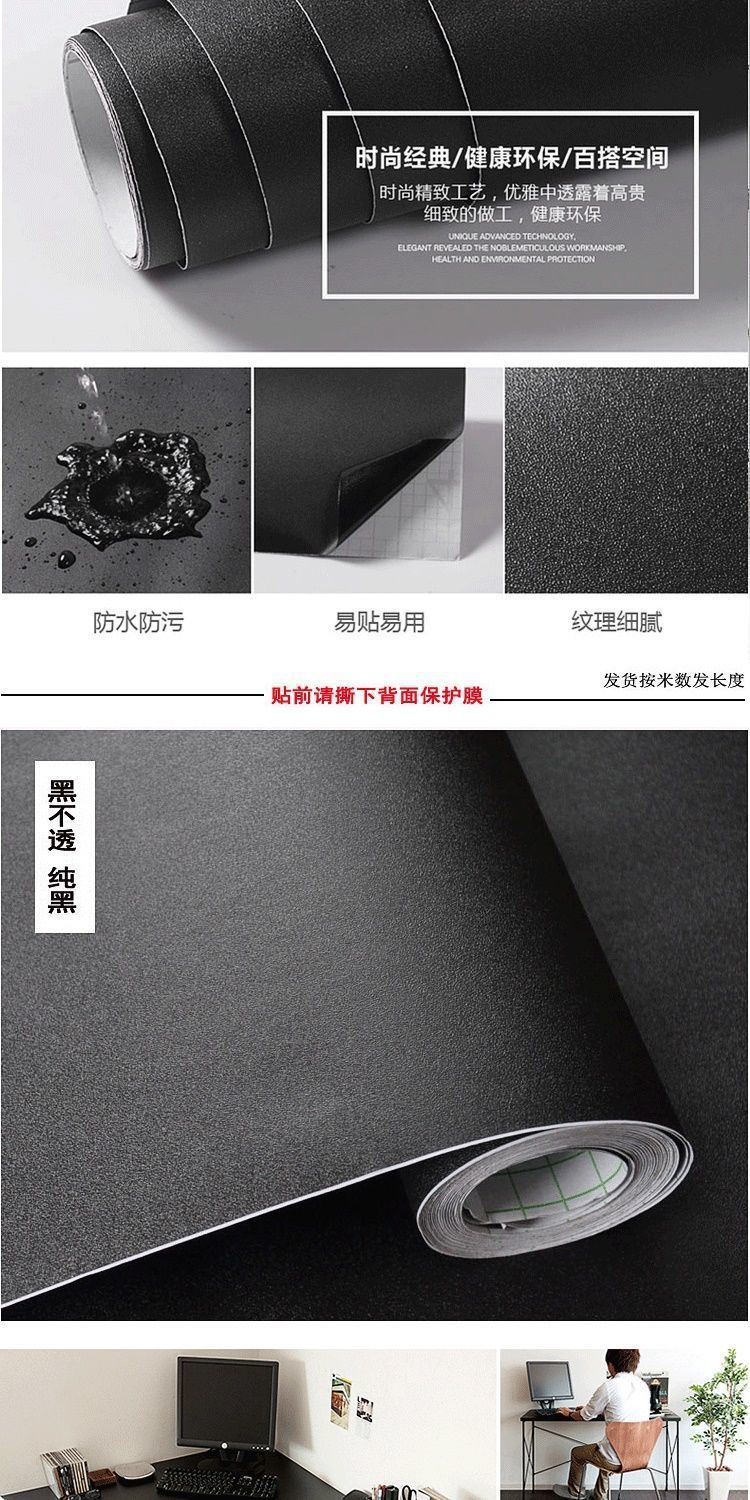 Đen dán giấy dán tường tự dính màng mờ máy tính để bàn nội thất đổi mới nền dán tường mờ giấy dán tường nhà máy
