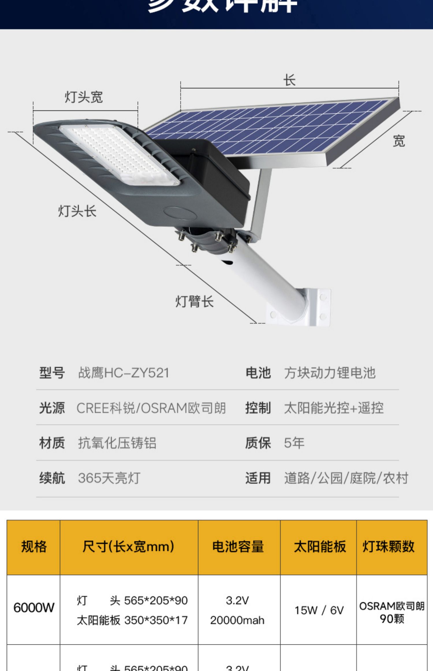 Đèn đường năng lượng mặt trời đèn ngoài trời 6 mét nông thôn mới đèn cực cao đèn LED sân vườn siêu sáng trọn bộ kèm cực