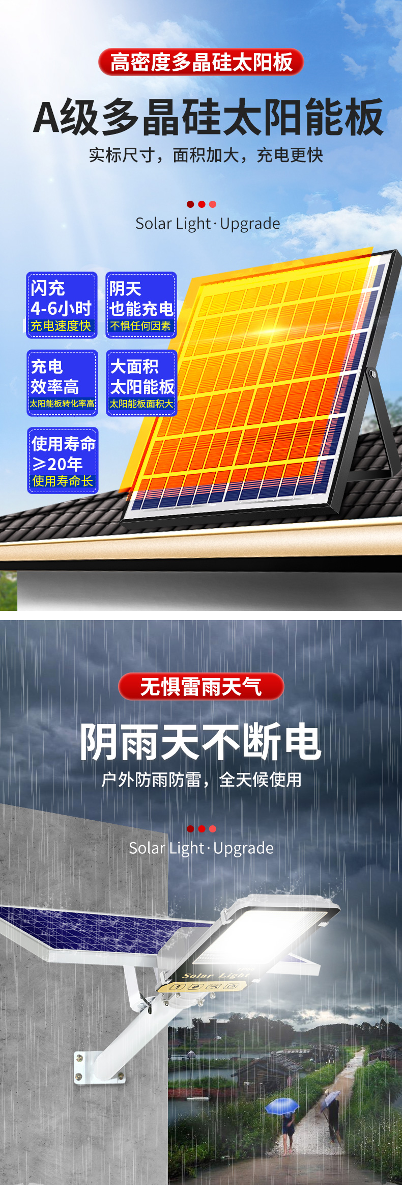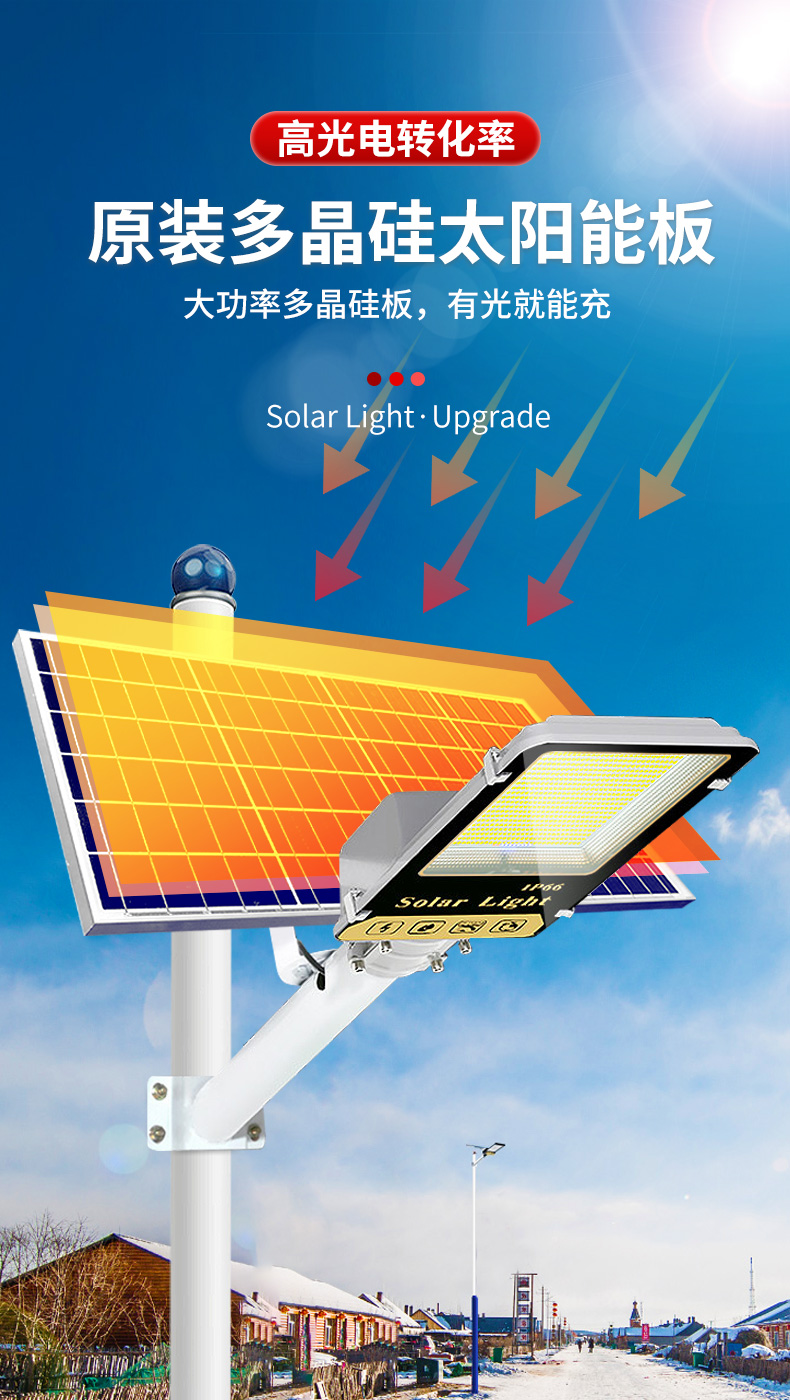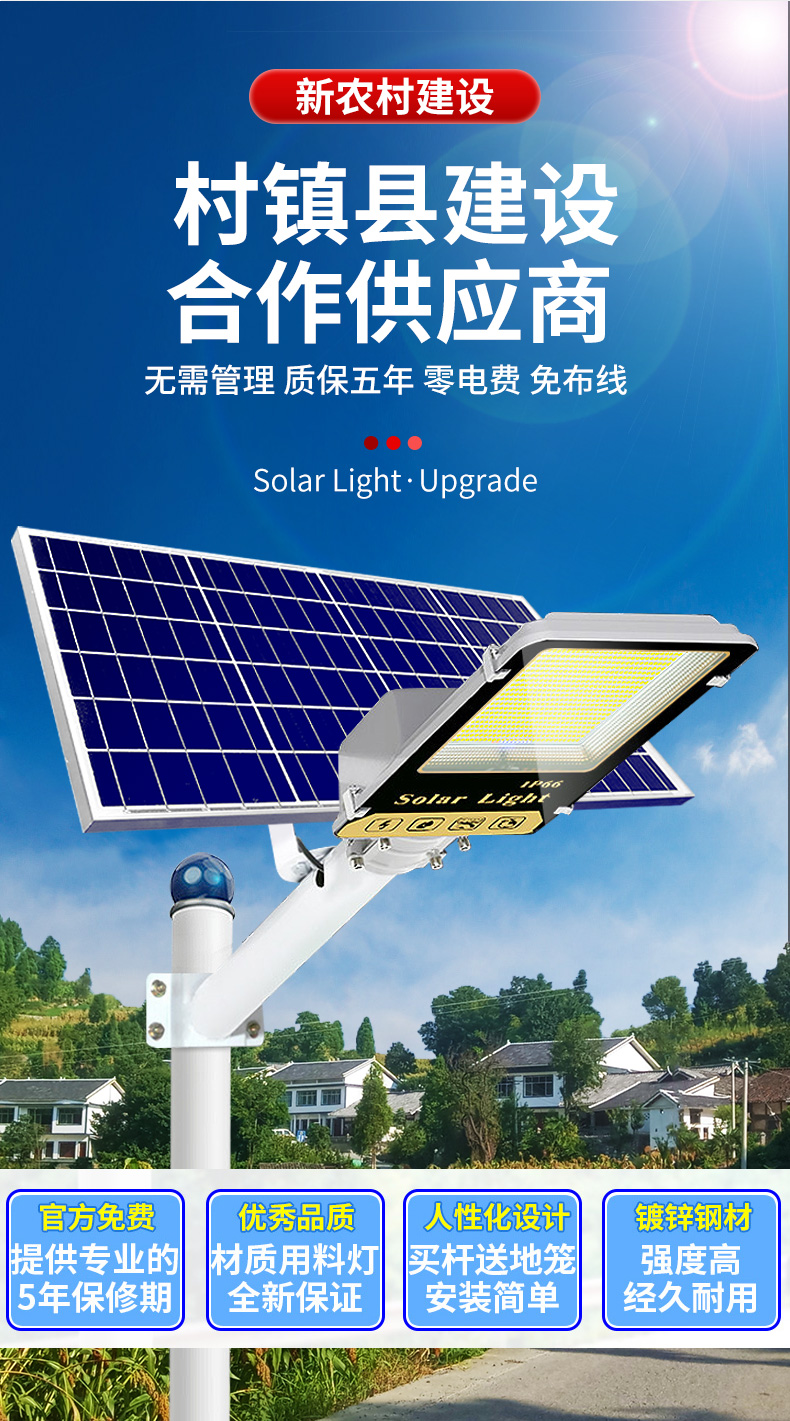 Đèn đường năng lượng mặt trời nông thôn mới ngoài trời hộ gia đình đèn sân vườn siêu sáng công suất cao 1200W chiếu sáng chống nước 6 mét đèn đường