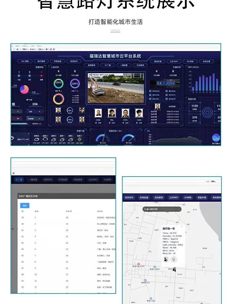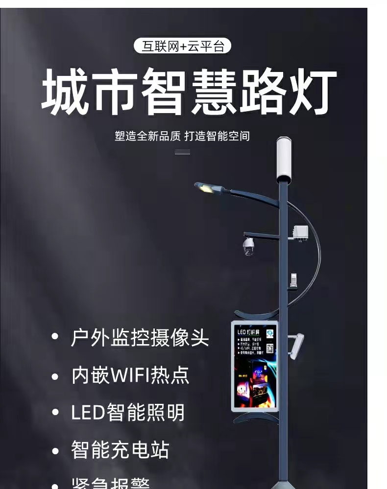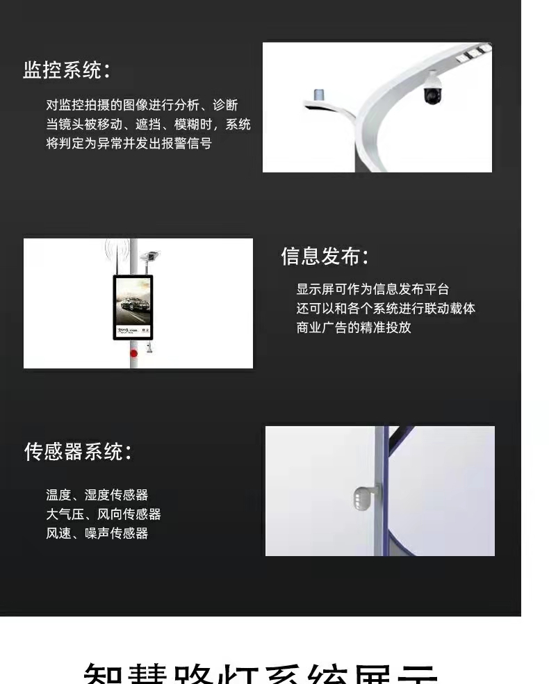 Đèn đường thông minh đa chức năng chiếu sáng ngoài trời 5G cột đèn thông minh công viên hội trường triển lãm thành phố PM2.5 tùy chỉnh màn hình