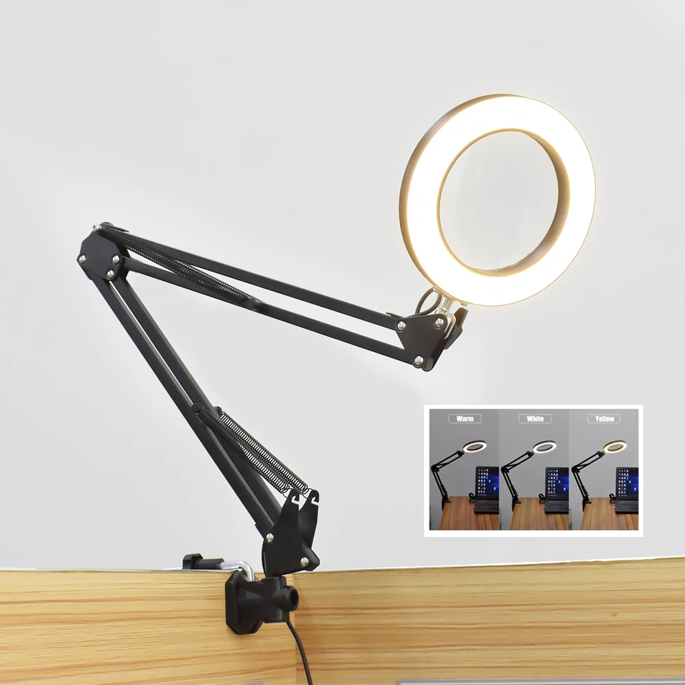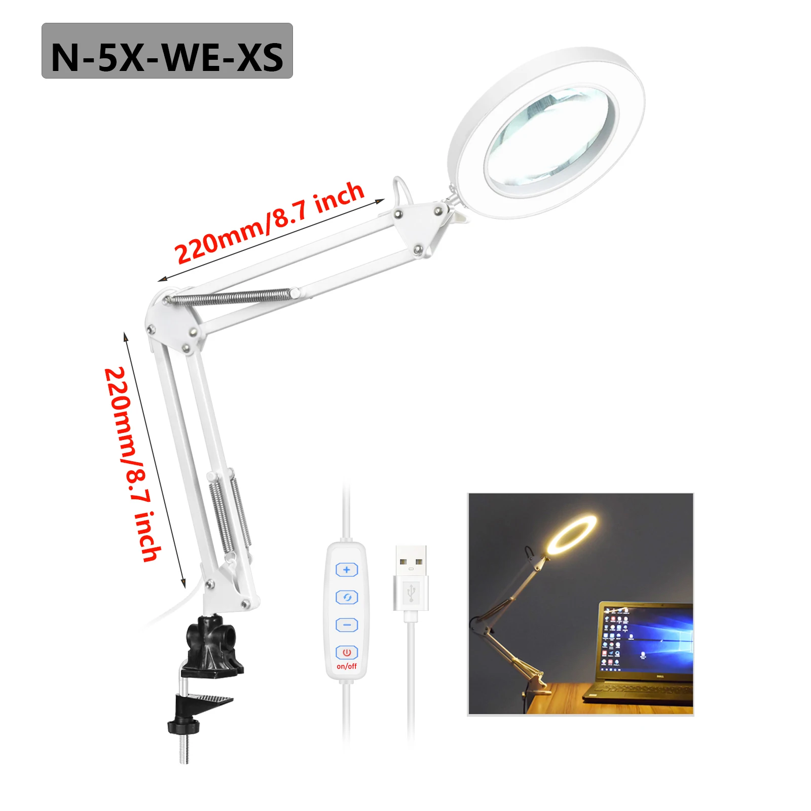 EOOKU 8W USB LED 3 Colors Table Lamp Dimming Desk Reading Light with 5X Large Magnifying Glass Magnifier Nail Beauty Light