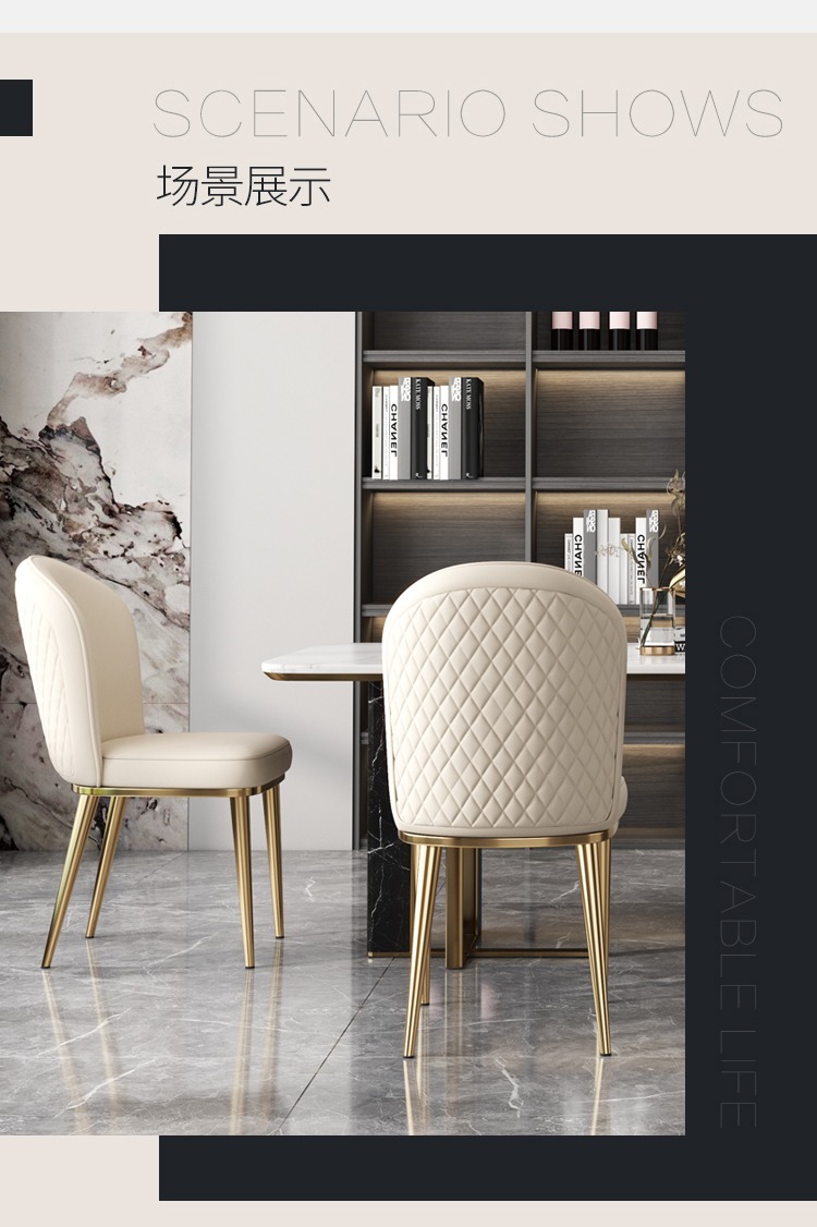 Đèn ghế ăn sang trọng tại nhà tựa lưng cảm giác cao cấp Bắc Âu Ý hiện đại tối giản da lưới đỏ khách sạn làm móng tay bàn ăn