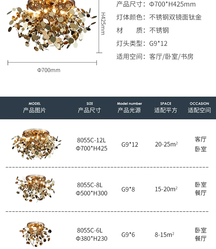 Hậu hiện đại tối giản sáng tạo đèn trần inox phòng ngủ lối đi phòng khách phòng ăn đèn trần. Quý khách có nhu cầu mua Đèn trong nhà nhập khẩu vui lòng liên hệ với chúng tôi để được tư vấn hỗ trợ. Dịch vụ mua hàng Trung Quốc sẽ hỗ trợ quý khách mua hàng từ nhà cung cấp và giao tới tận tay quý khách hàng..Màu sắc: Vàng Là thiết bị thông minh: không Cách sử dụng: Chiếu sáng hàng ngày Tính năng: thời trang Số hiệu: 8055C Có thể điều chỉnh độ sáng: Không Hoàn thiện: Đánh bóng Bảo hành: 3 năm Kỹ thuật: Mạ Diện tích chiếu sáng: 10-15 mét vuông Ứng dụng: Nhà bếp, Phòng ăn, Phòng ngủ, Tiền sảnh, phòng học, PHÒNG TẮM Loại công tắc: Công tắc bật/tắt cảm ứng Số nguồn sáng: 10~15 Chất liệu: Thép không gỉ Loại đế: G9 Phong cách: Phong cách cổ điển/hậu hiện đại mới Kiểu lắp đặt: Gắn trên bề mặt Chất liệu thân: Thép không gỉ Chứng nhận: CCC Điện áp:90-260V Nguồn điện:AC Nguồn sáng:Bóng đèn LED Là bóng đèn Bao gồm:Có Tên thương hiệu:NoEnName_Null Xuất xứ:Trung Quốc đại lục Loại sản phẩm:Đèn trần Chứng nhận:CCC