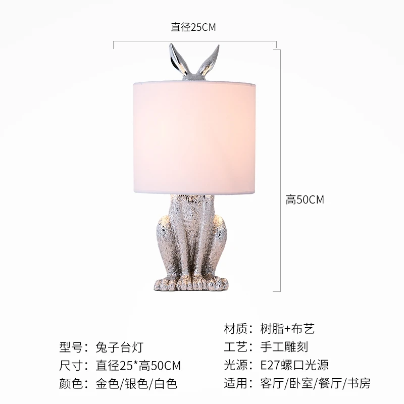 Hiện đại hóa trang thỏ đèn nhựa phòng ngủ nghiên cứu nhà hàng trang trí cá tính sáng tạo để bàn đèn chiếu sáng. Quý khách có nhu cầu mua Đèn để bàn nhập khẩu vui lòng liên hệ với chúng tôi để được tư vấn hỗ trợ. Dịch vụ mua hàng Trung Quốc sẽ hỗ trợ quý khách mua hàng từ nhà cung cấp và giao tới tận tay quý khách hàng..Là thiết bị thông minh:không Chất liệu:nhựa Bảo hành:3 Kiểu dáng:Đương đại Nguồn sáng:Bóng đèn LED Loại bóng:Vải Có thể điều chỉnh độ sáng:Không Chứng nhận:CCC,ce Điện áp:90-260V Nguồn điện:AC Là bóng đèn đi kèm:Có Tên thương hiệu:NoEnName_Null Xuất xứ:Trung Quốc Đại lục Loại sản phẩm:Đèn bàn