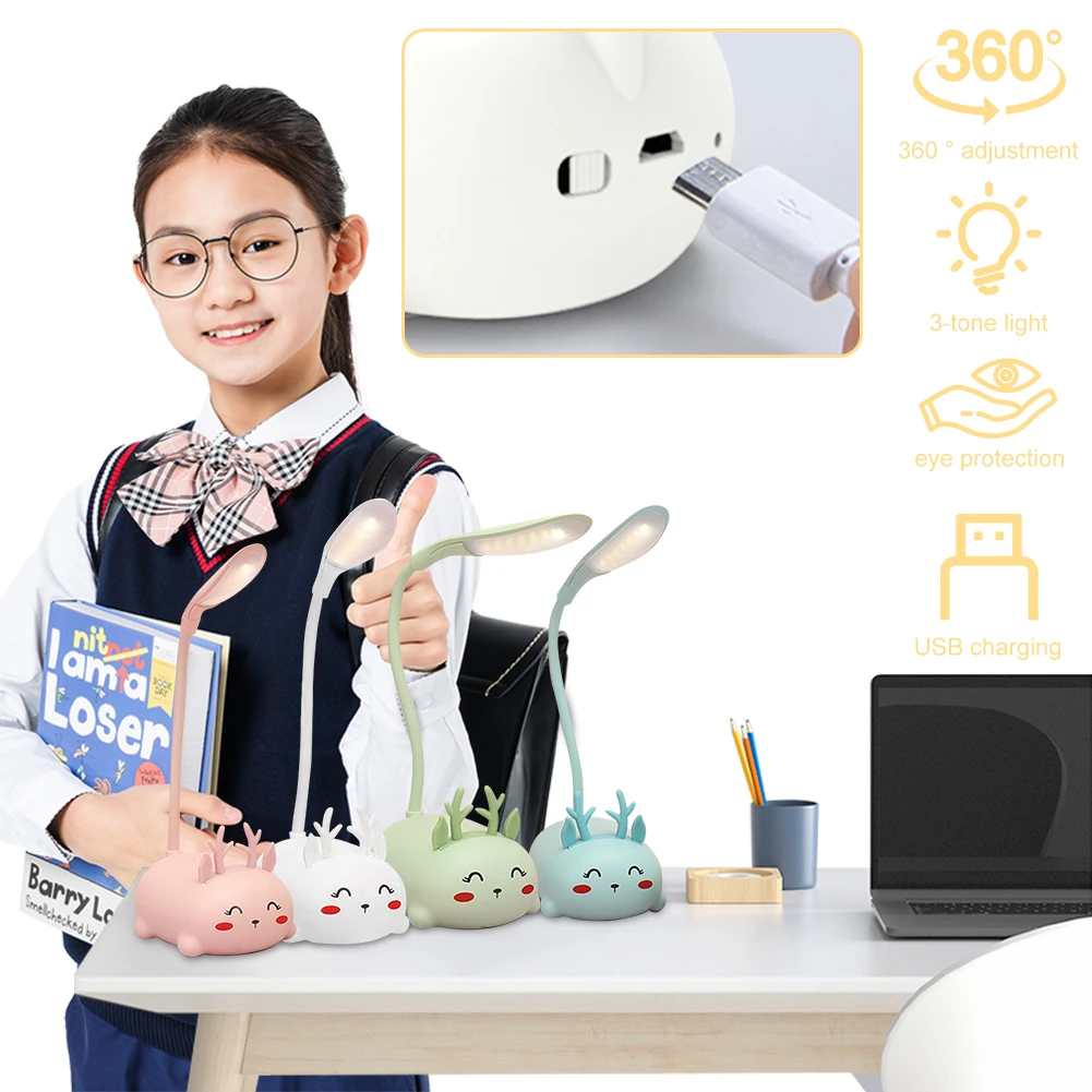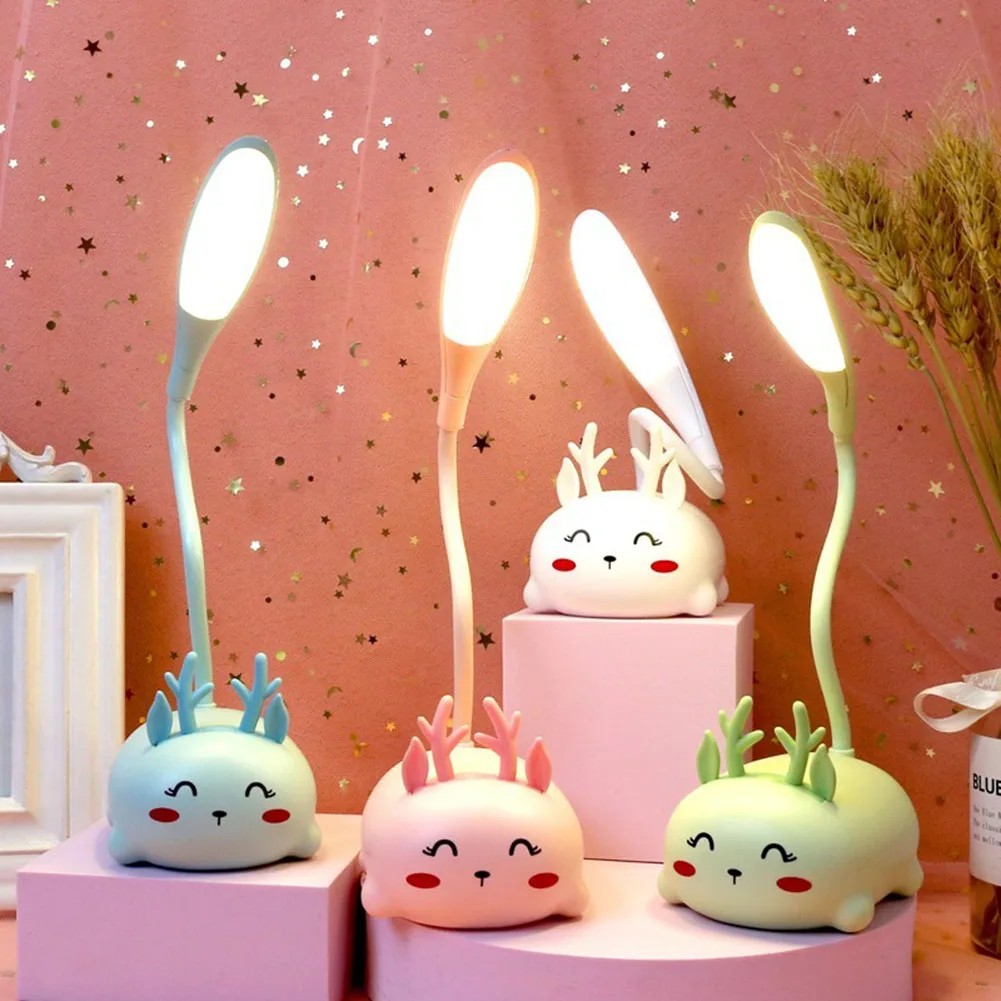 Cartoon Deer Shape LED Desk Lamp Adjustable Cute Eye Protective Reading Light LED Kawaii Deer Desk Lamp Cartoon Animal LED Night
