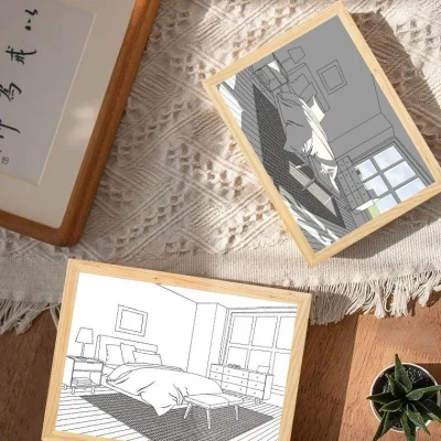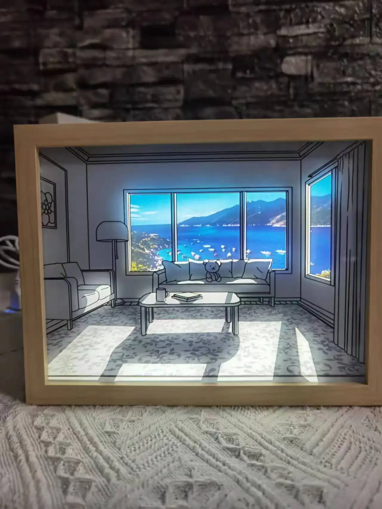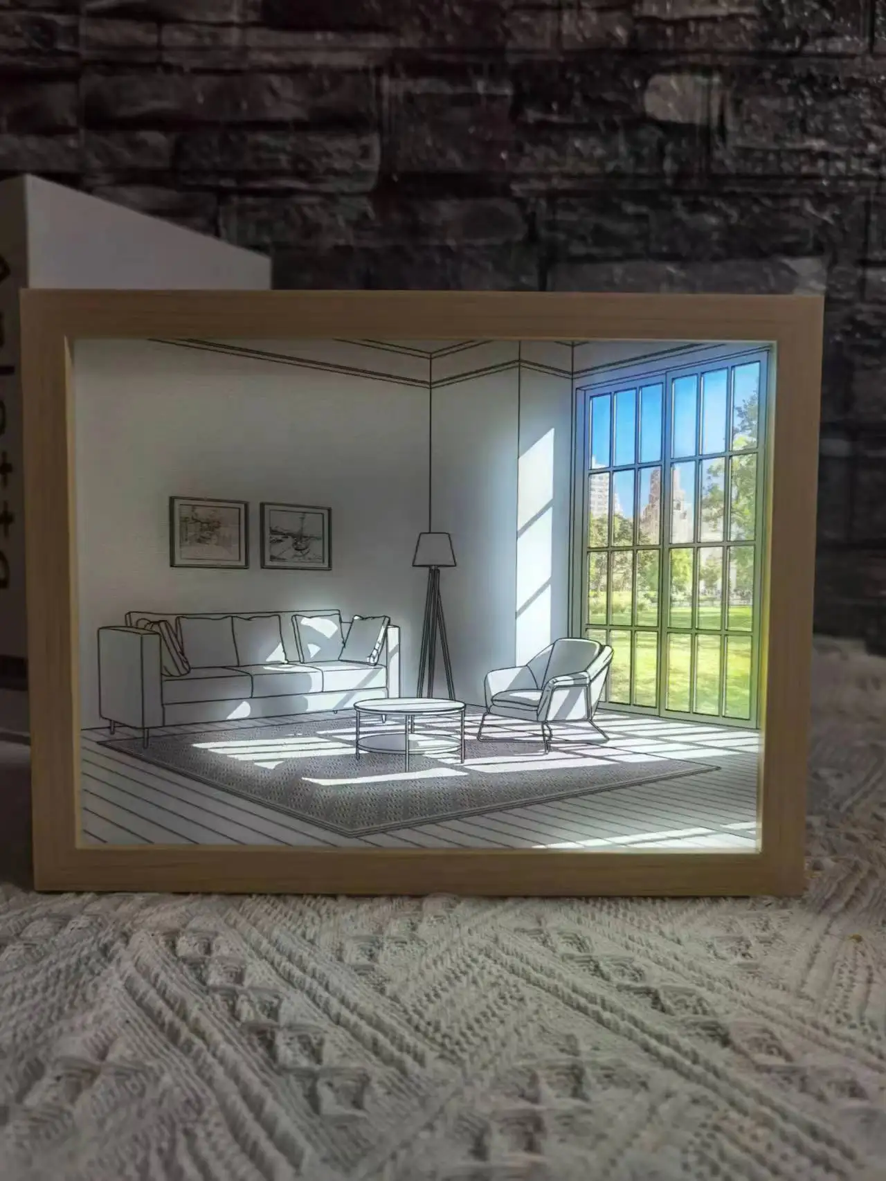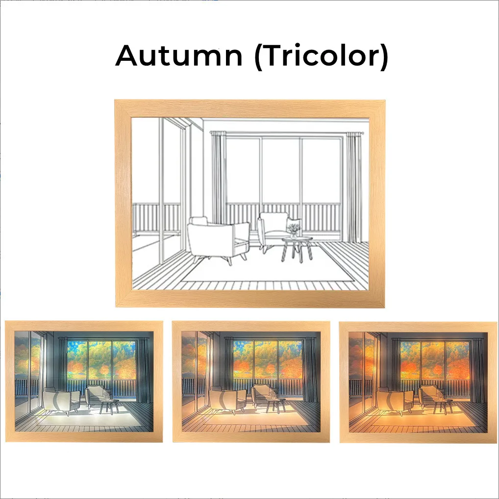 Tricolor LED Light Painting Table Lamp Bedroom Living Room Home Decor USB Wooden Photo Frame Night Light Gifts Desk Ornaments