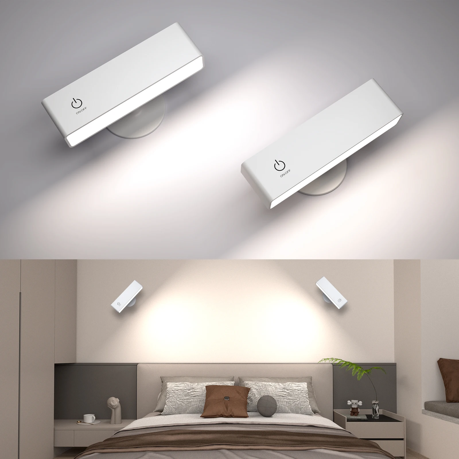 * 【4000mAh Battery & 50 LEDs】The led wall sconce with a sleek rectangular design evenly distributes 50 LED beads, not only make the wall lamp brighter but also illuminate a wider area. This reading light won’t produce glare or flicker, won’t harm the eyes, is perfect for reading.The battery-operated wall sconces come with a built-in 4000mAh rechargeable battery that can operate for up to 30 hours at the lowest brightness, and up to 6 hours at the highest brightness level. These rechargeable wall lights feature a Type-C fast charging USB port, allowing for a full charge in less than 4 hours.