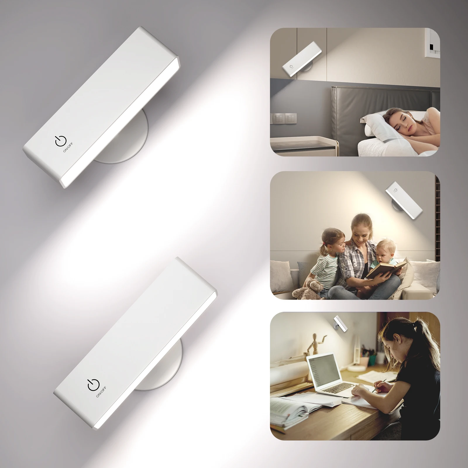 LED Eye Protection Book Table Lamp 2 Pack Touch Switch 360 Rotatable USB Recharge Night Light For Bedroom Reading Wall Lamp