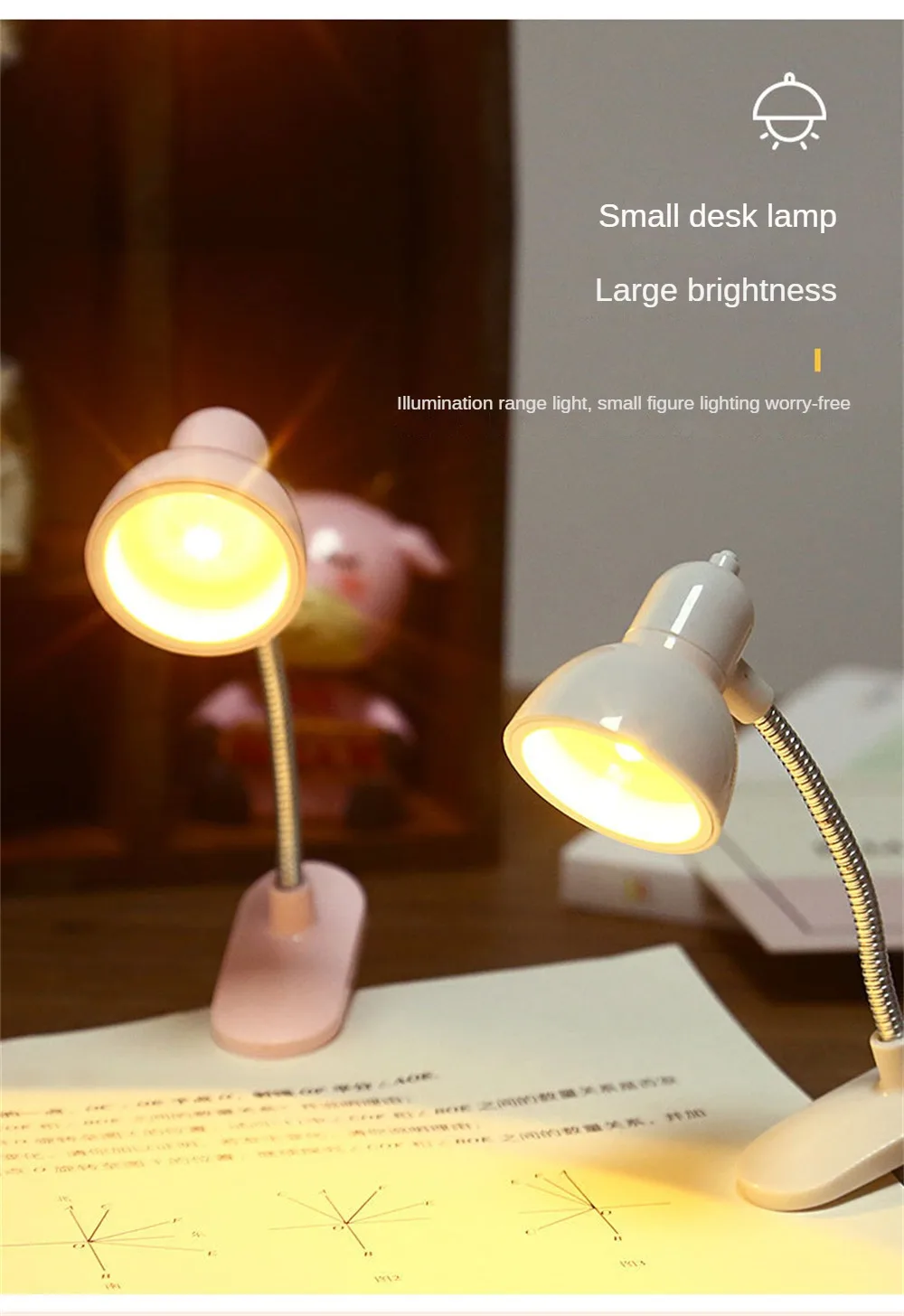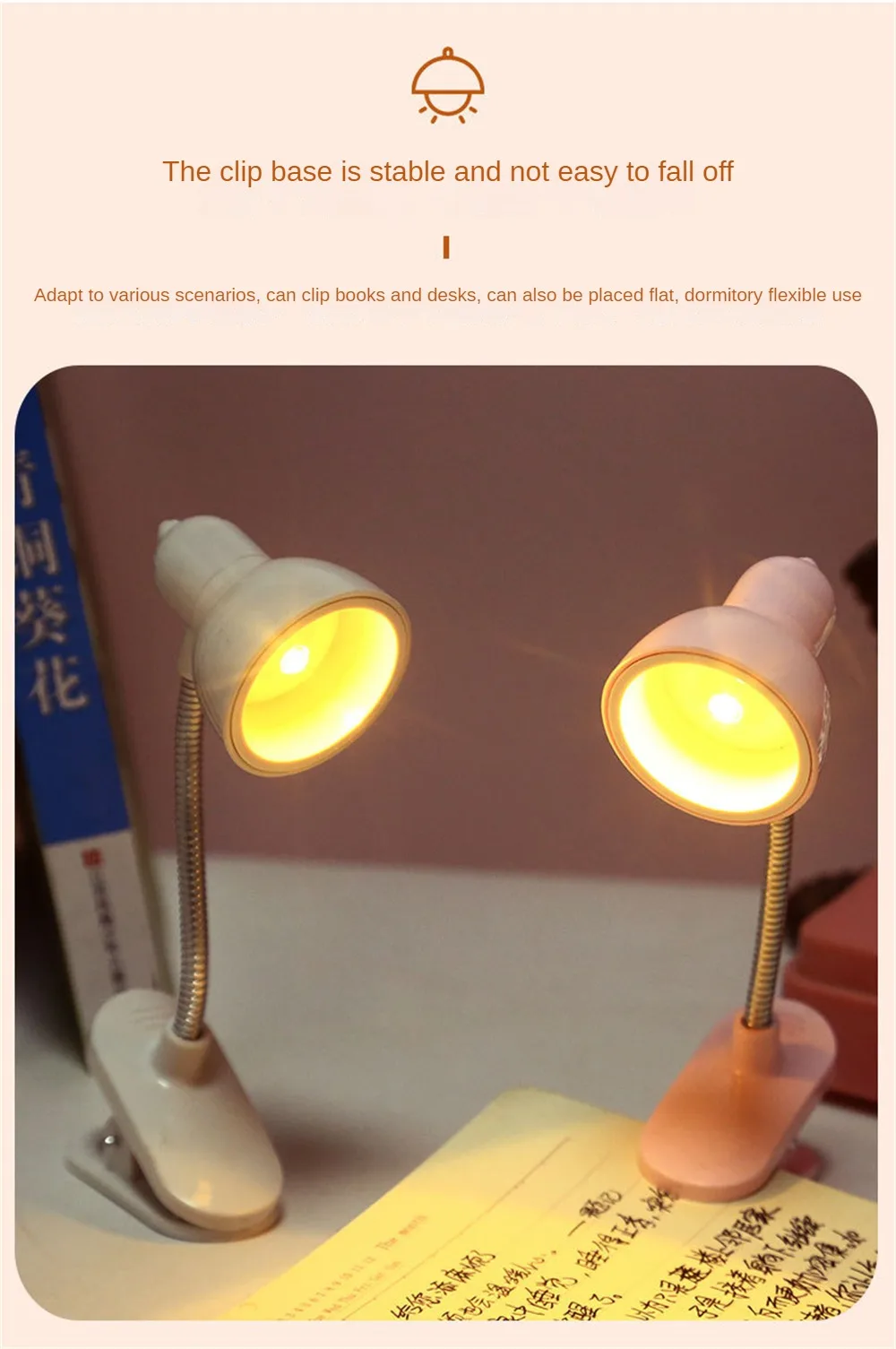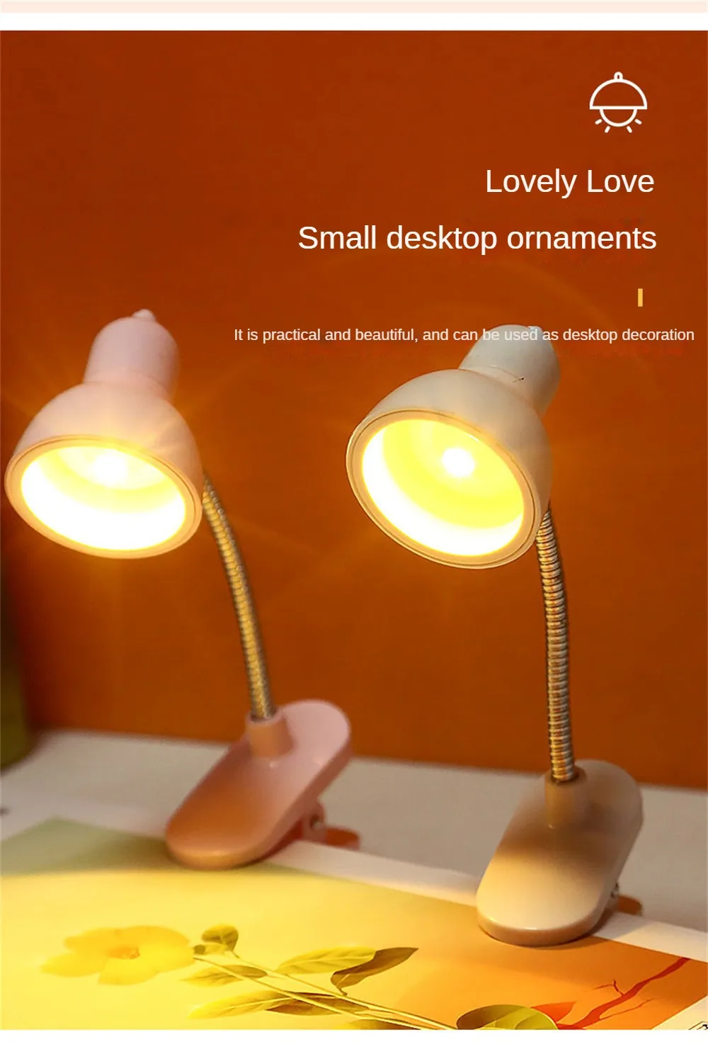 LED Eye Protection Book Night Light Adjustable Mini Clip-On Study Desk Lamp Battery Powered Flexible For Travel Bedroom Reading