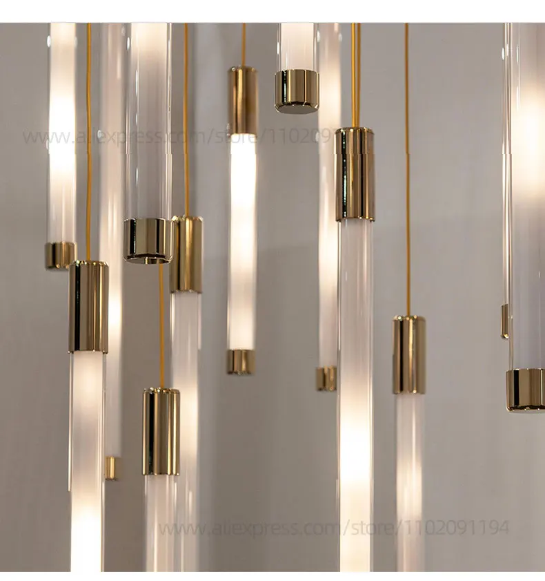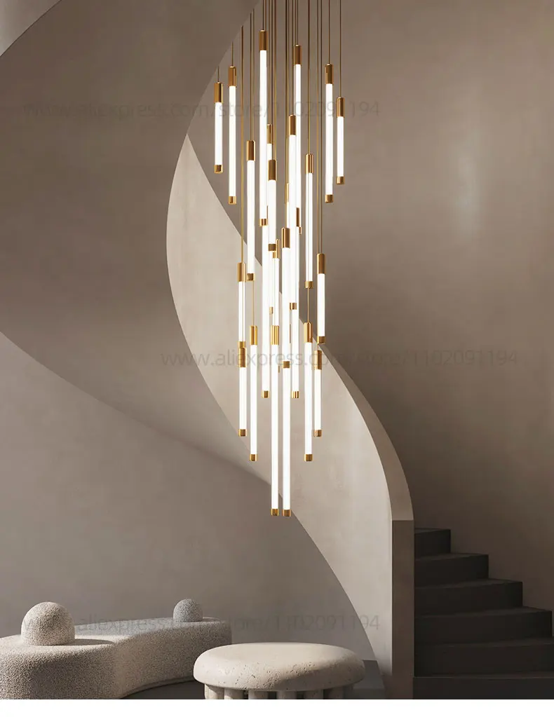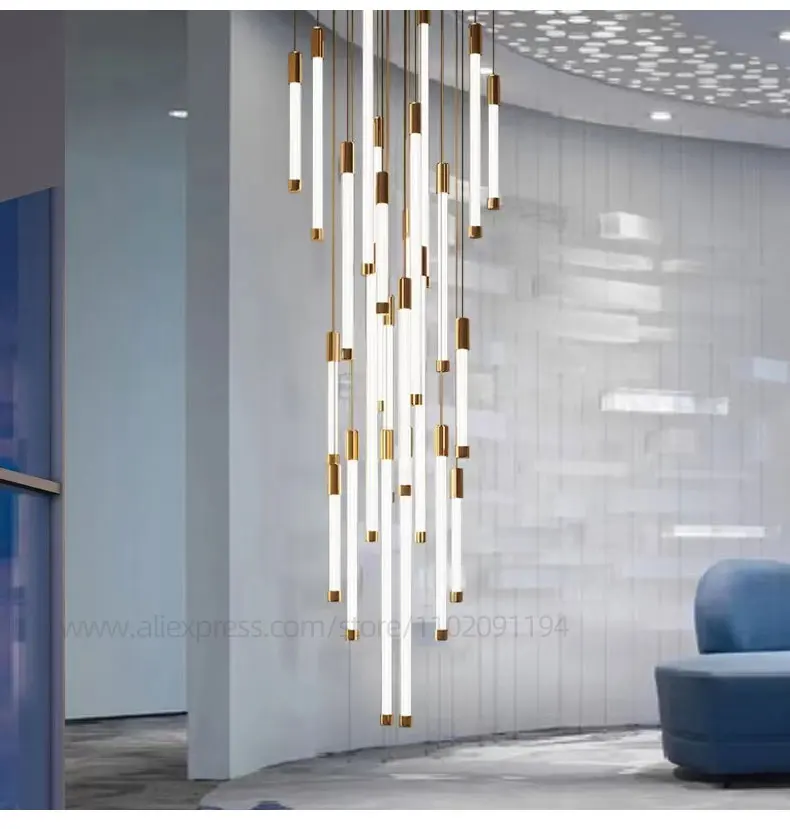 Take a look ✨: Long LED Pendant Lamp Hanging Modern Living Room Lamp Villa Staircase Pendant Lamp Spotlight Indoor Lighting Tubular Chandelier