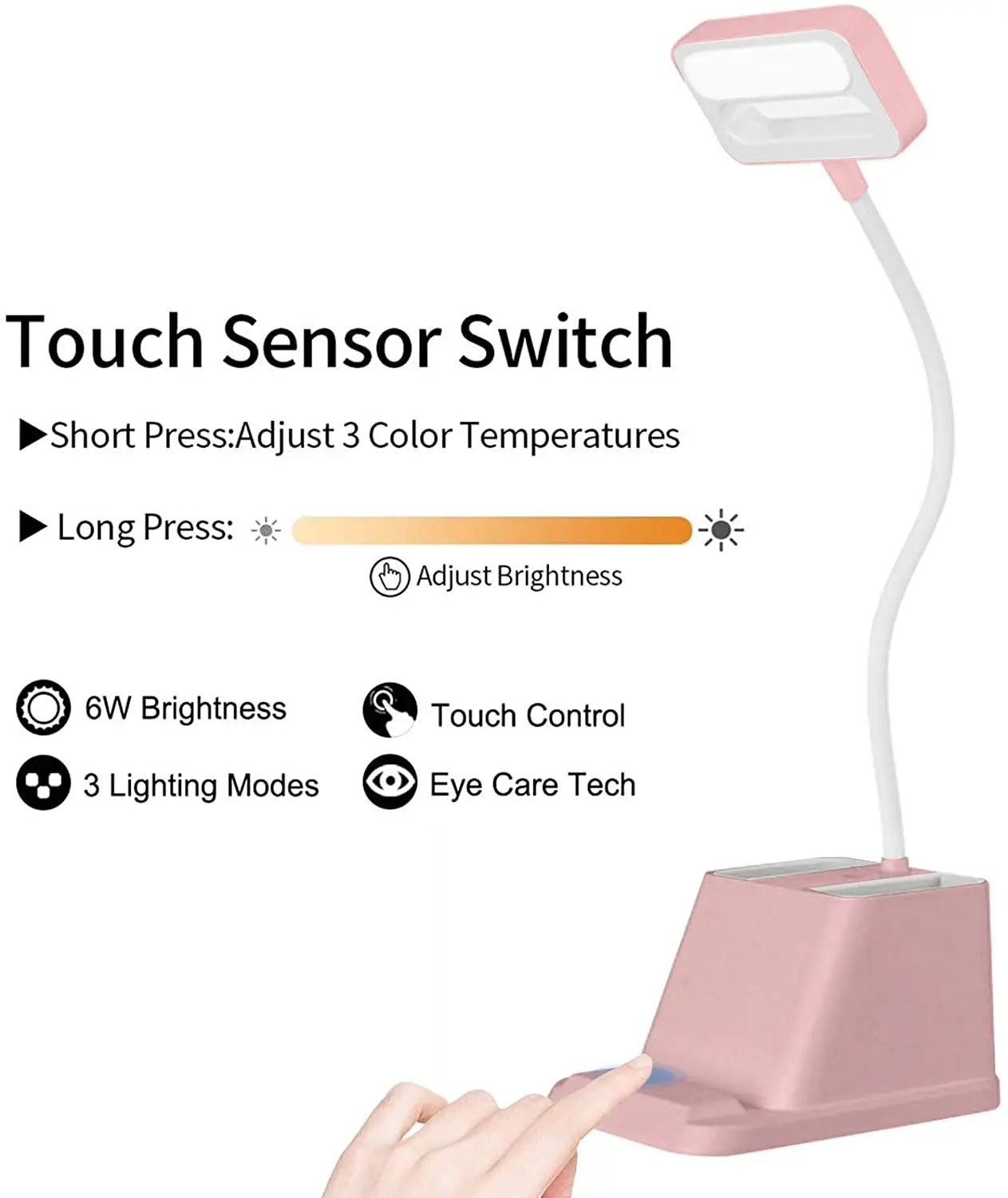 4 lighting modes and stepless dimming: The desk lamp has sensitive touch control, adjustable 3 lighting modes (white light, warm white light, cold white light) and multi-brightness adjustment; suitable for work, study, reading or relaxation.