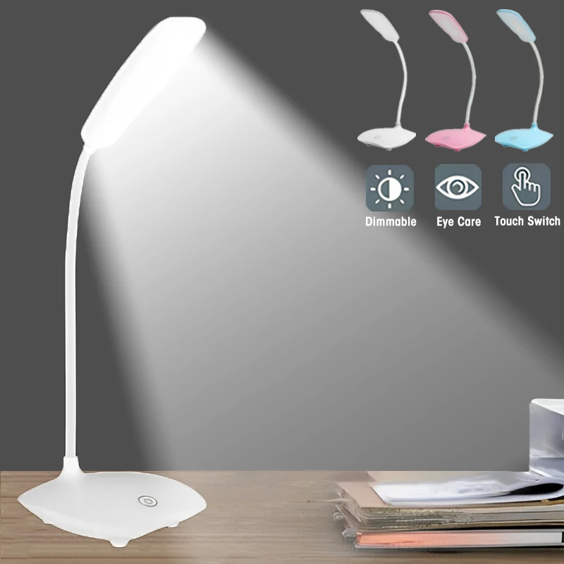 LED Desk Lamp Foldable Table Lamp Stepless Dimmable Touch Reading Light Eye Protection Night Light Battery Powered Book Lamp