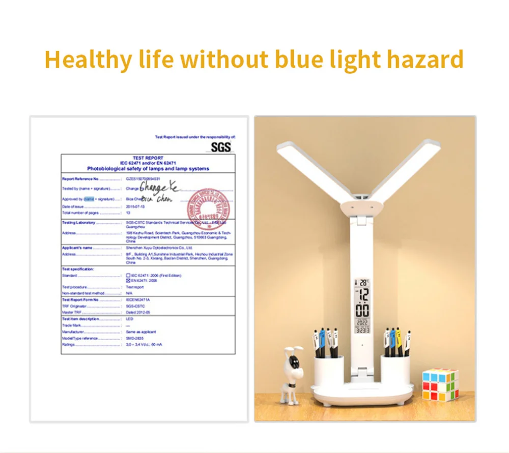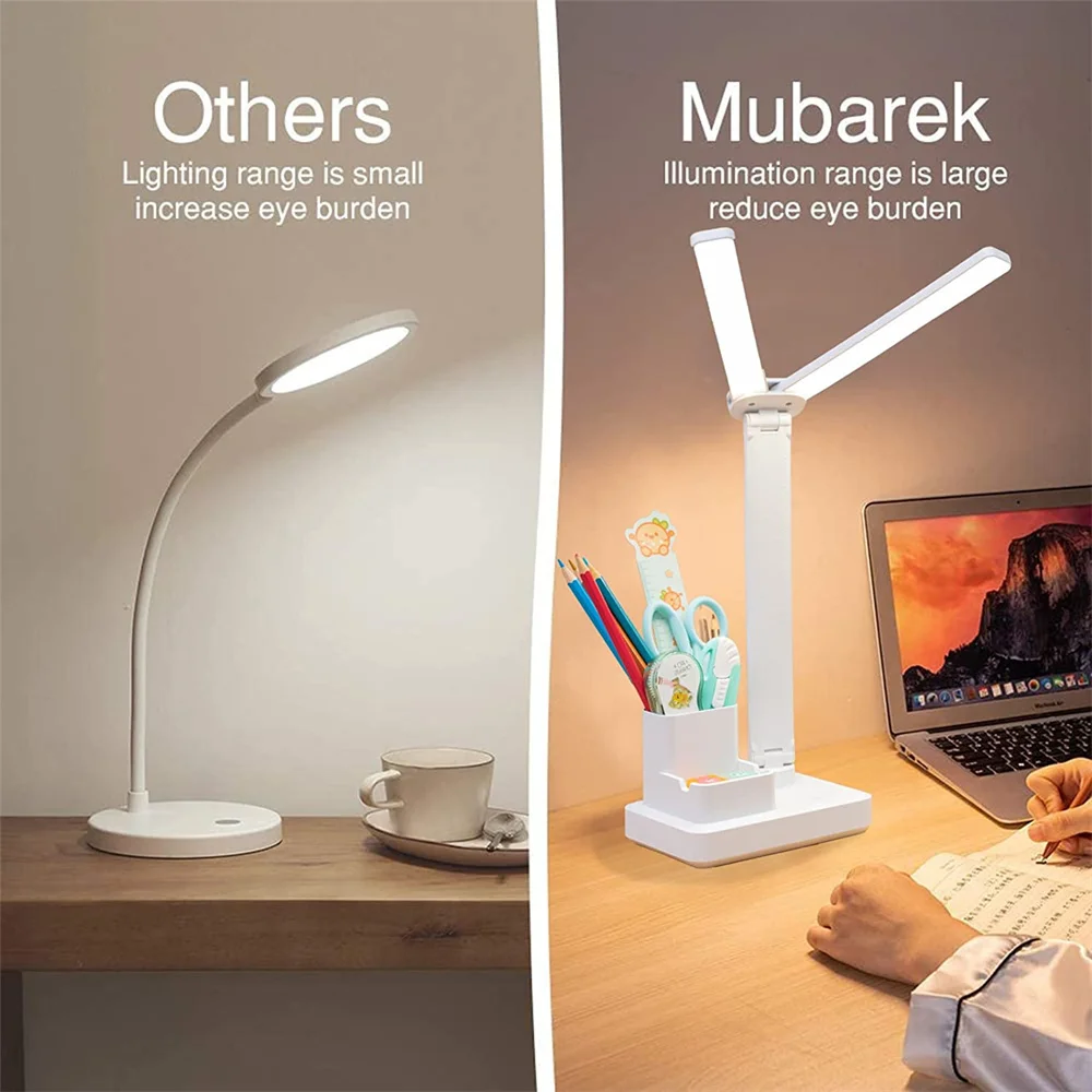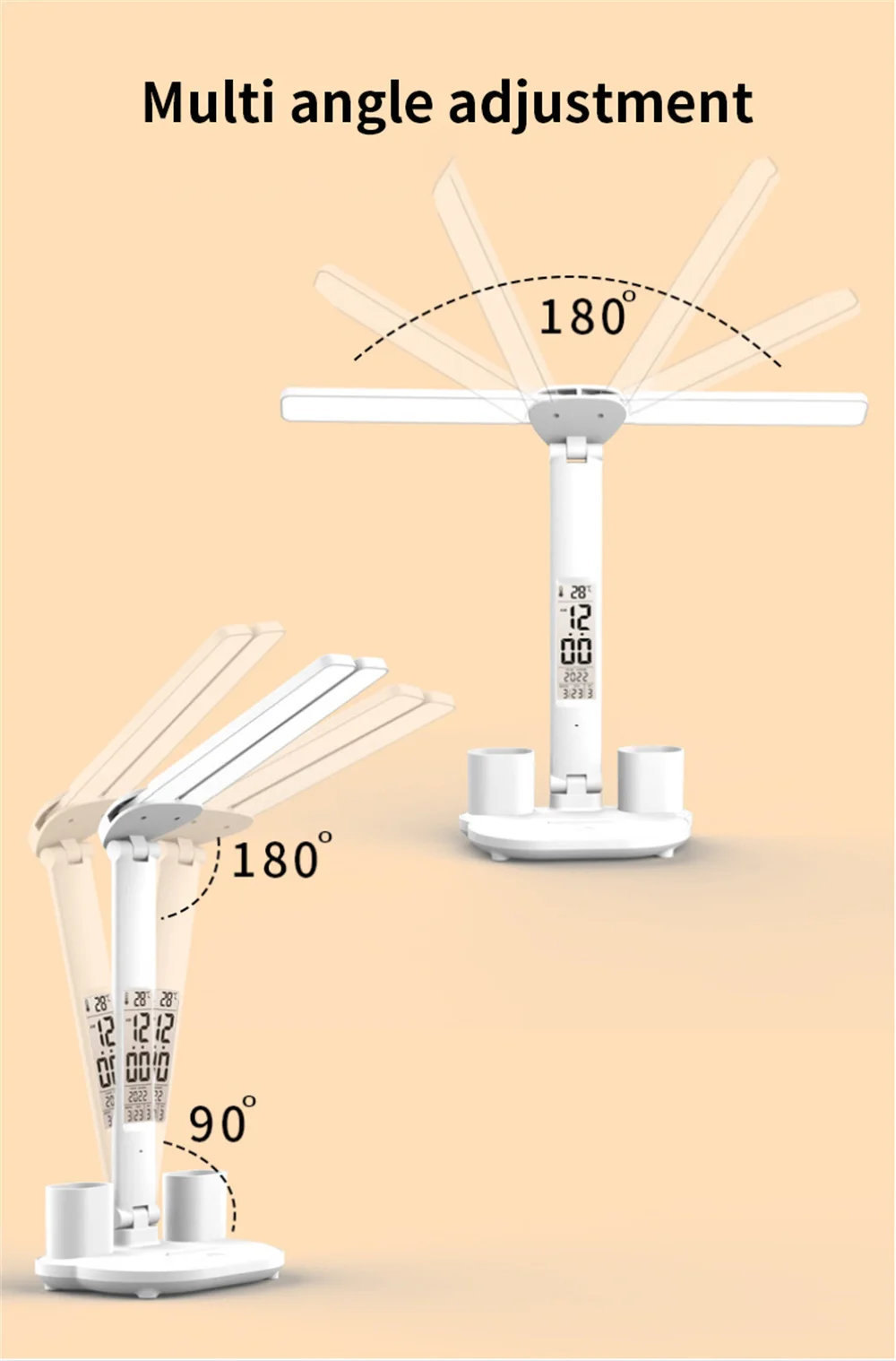 LED Desk Lamp USB Dimmable Touch Foldable Table Lamp with Calendar Temperature Clock Night Light for Study Reading Lamp