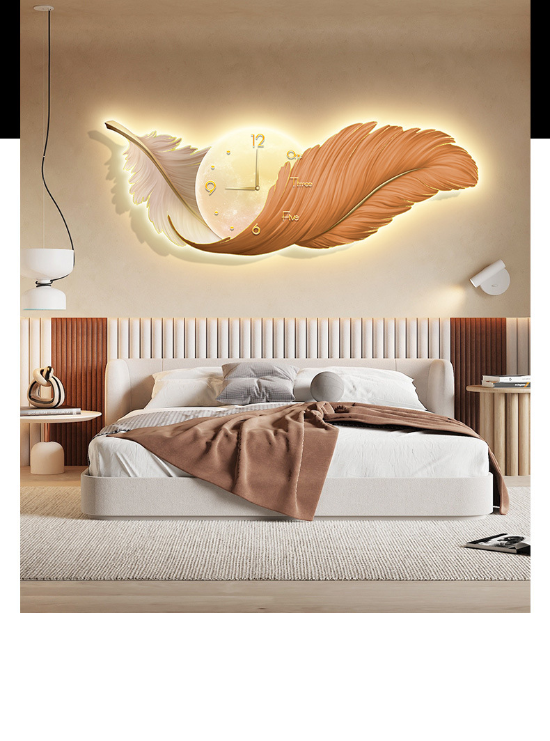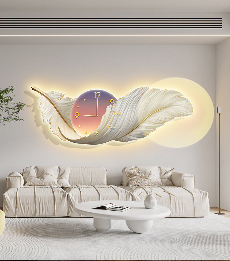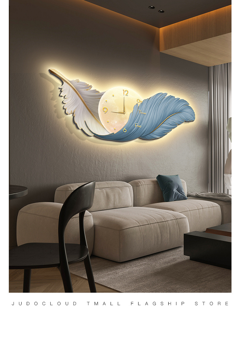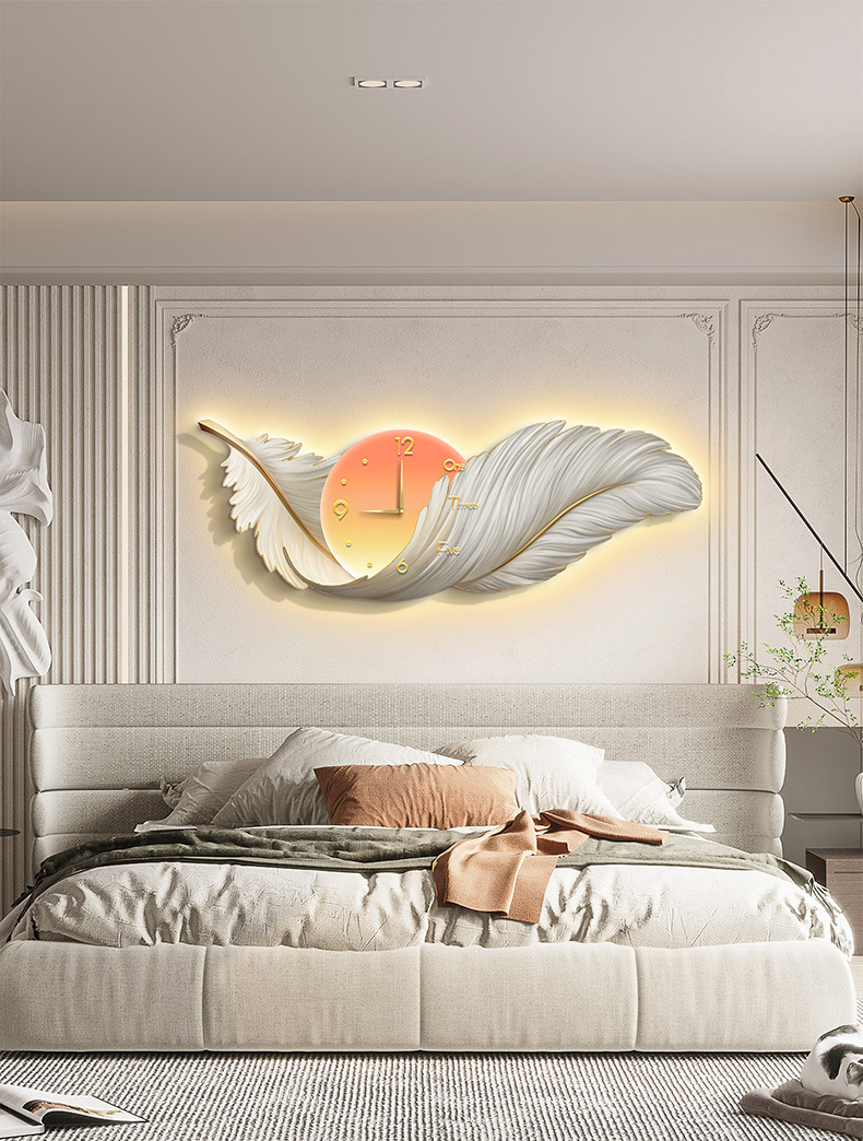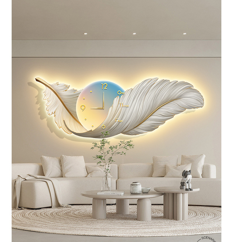 Đèn LED đồng hồ đồng hồ lông vũ Đẹp sang trọng cao cấp không khí cao cấp cảm giác phòng ăn nhà hàng tranh trang trí phòng khách treo tranh