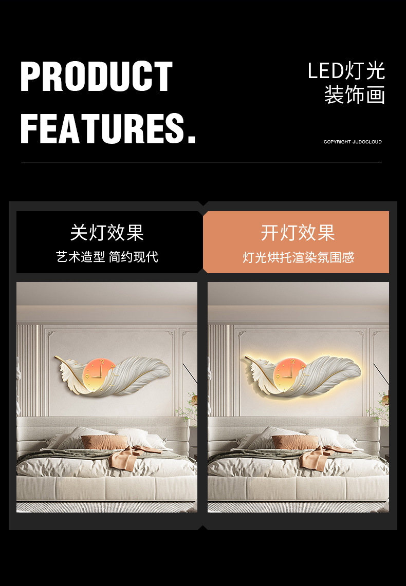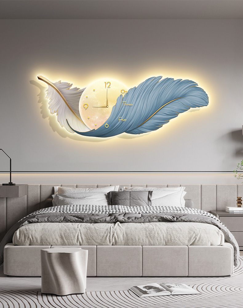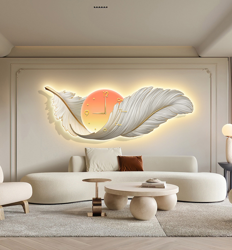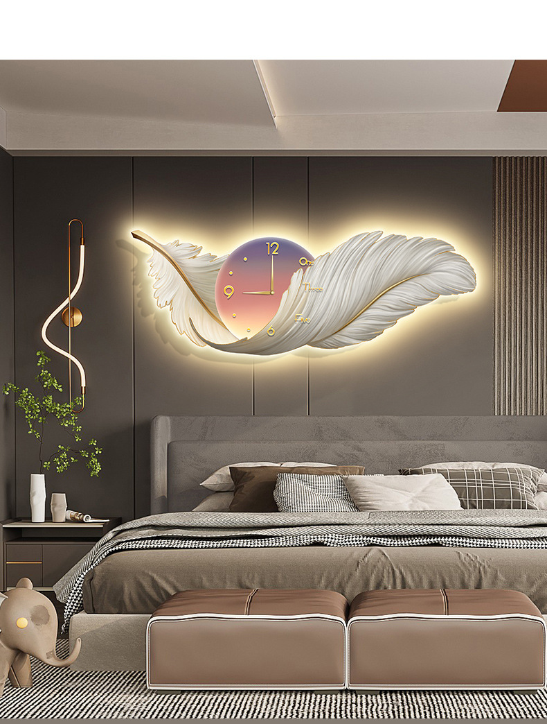 Đèn LED đồng hồ đồng hồ lông vũ Đẹp sang trọng cao cấp không khí cao cấp cảm giác phòng ăn nhà hàng tranh trang trí phòng khách treo tranh
