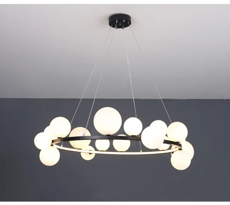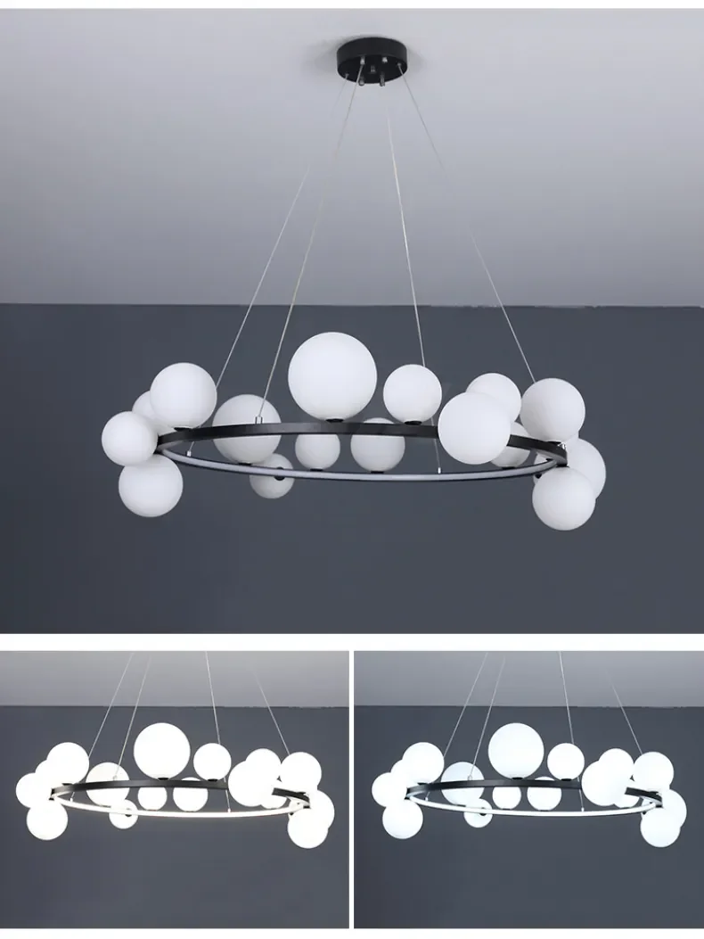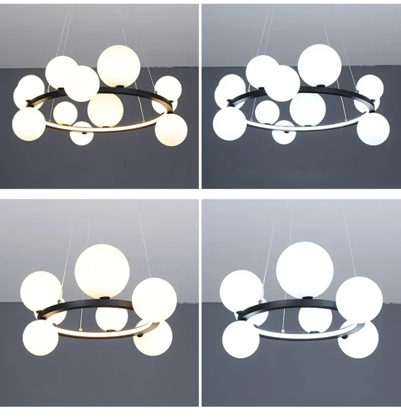 8 heads/12 heads – Black lamp body – Milky white lampshade – Warm light/white light effect live display.