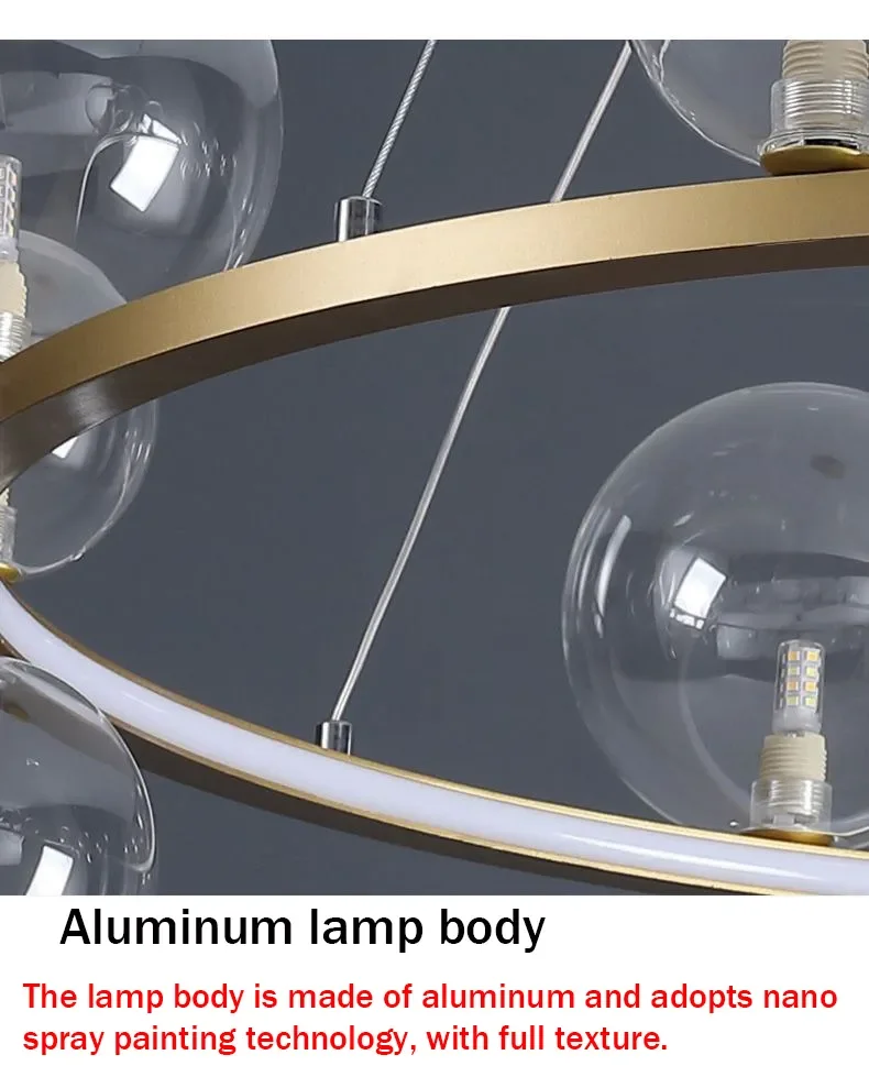 This pendant lamp is very beautiful. It consists of an aluminum lamp ring and glass lampshade. It is suitable for living rooms, dining rooms, bedrooms, and other places where you need to install it.